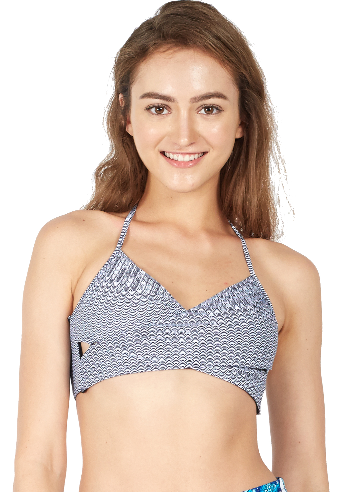 Crossover design with cutoutSideboning onbikini for additional supportAdjustable shoulder and back straps