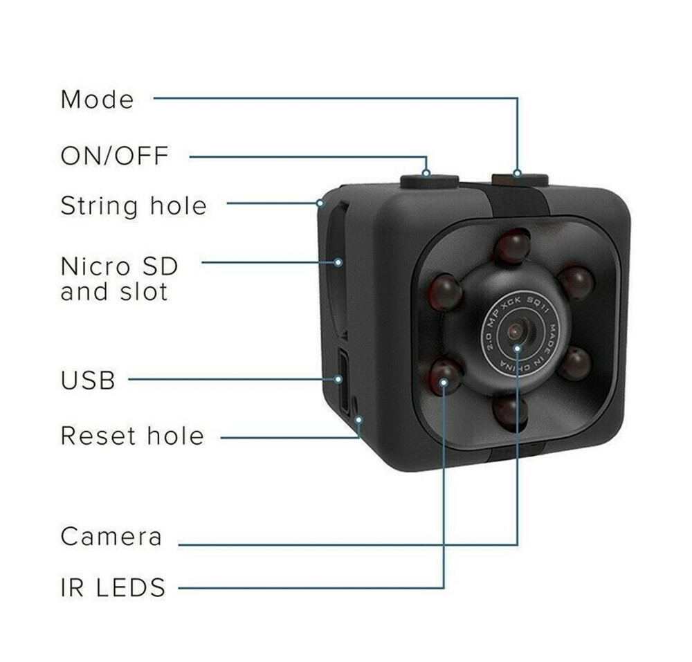 Original SQ11 Mini Spy Camera Hidden Sensor Night Vision Camera Sports DVR Mini Camera HD 720P Sports DV Video Small Video Camera Cam Connected to Mobile Phone Spycamera for Bathroom Mini Wireless CC