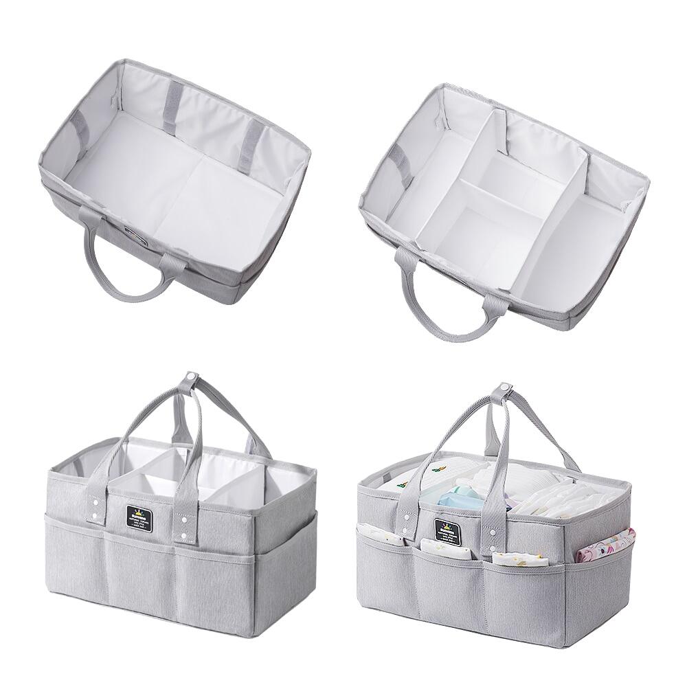 Remove the diaper organizer insert to use as a toy storage bin, baby hamper or nursery basket for additional nursery storage. Our lightweight, portable diaper caddy is waterproof and made of soft felt and features sturdy outer pockets for additional baby storage.