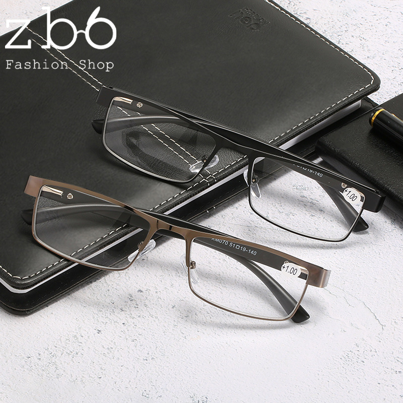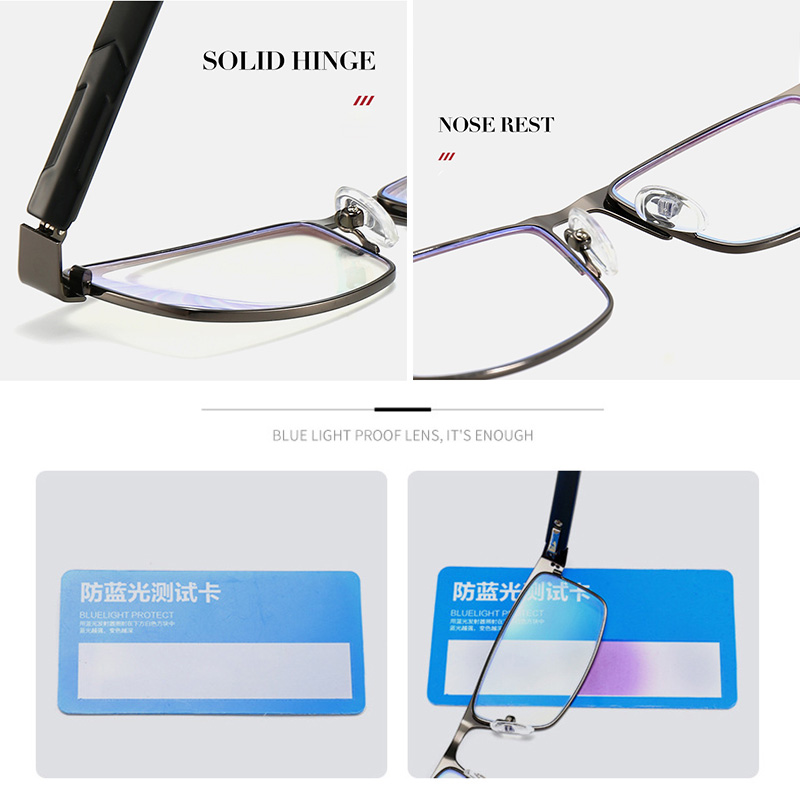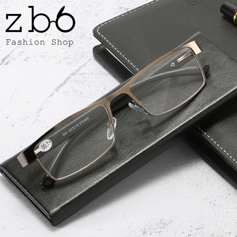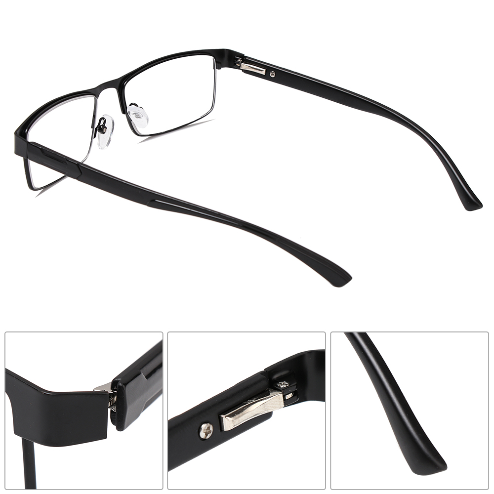 +100~+400 Reading Glasses Men Titanium Alloy Hinged Frame Anti-blue Light Presbyopia Glasses Business Style Aspheric High Light Transparent Clear Lenses
