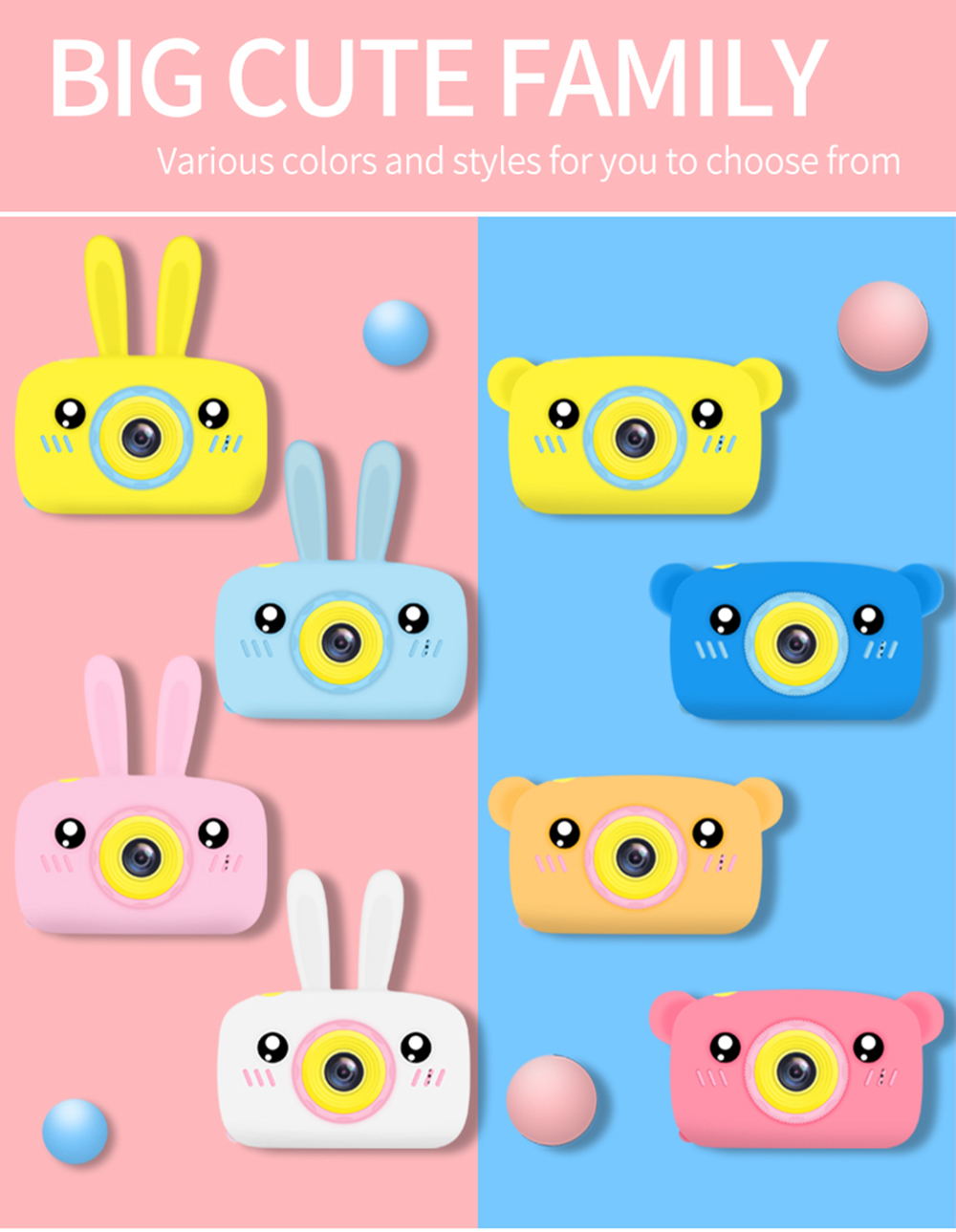• 【1080P IPS Screen & 12.0 Mega pixels】The kids digital camera is enquiped with 2.4 inch colorful display 1080P HD IPS screen, can takes good 12.0 Mega pixels pictures,up to 1920x1080P Video,greatly improve the photos definition compared with other children cameras.