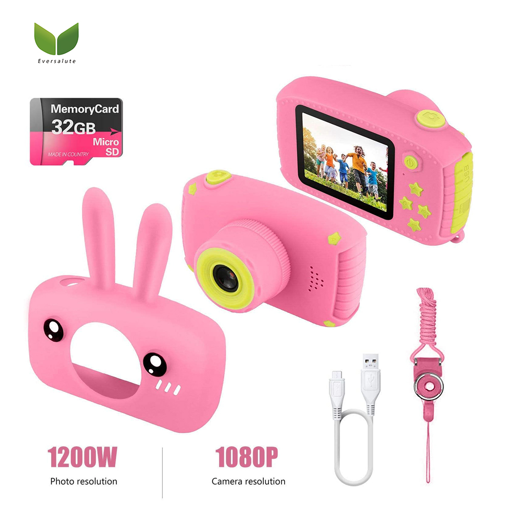 Eversalute LCD Screen 2 inch Kids Camera - Digital Children Cameras Cartoon Bear 12M 1080P Video Camera Toddler Boys Toys Birthday Gifts for Boy Age 3 4 5 6 7 8 Up to 32G Card