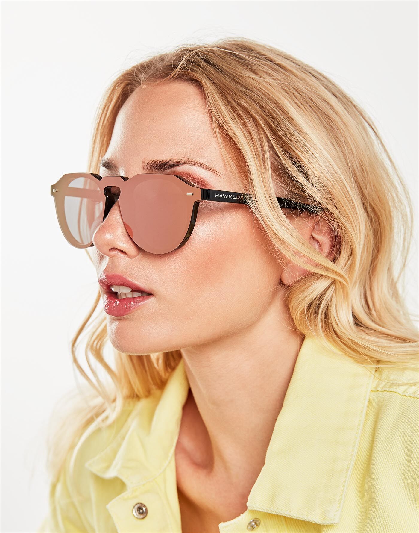 Shiny black frame and rose gold mirror mask lens