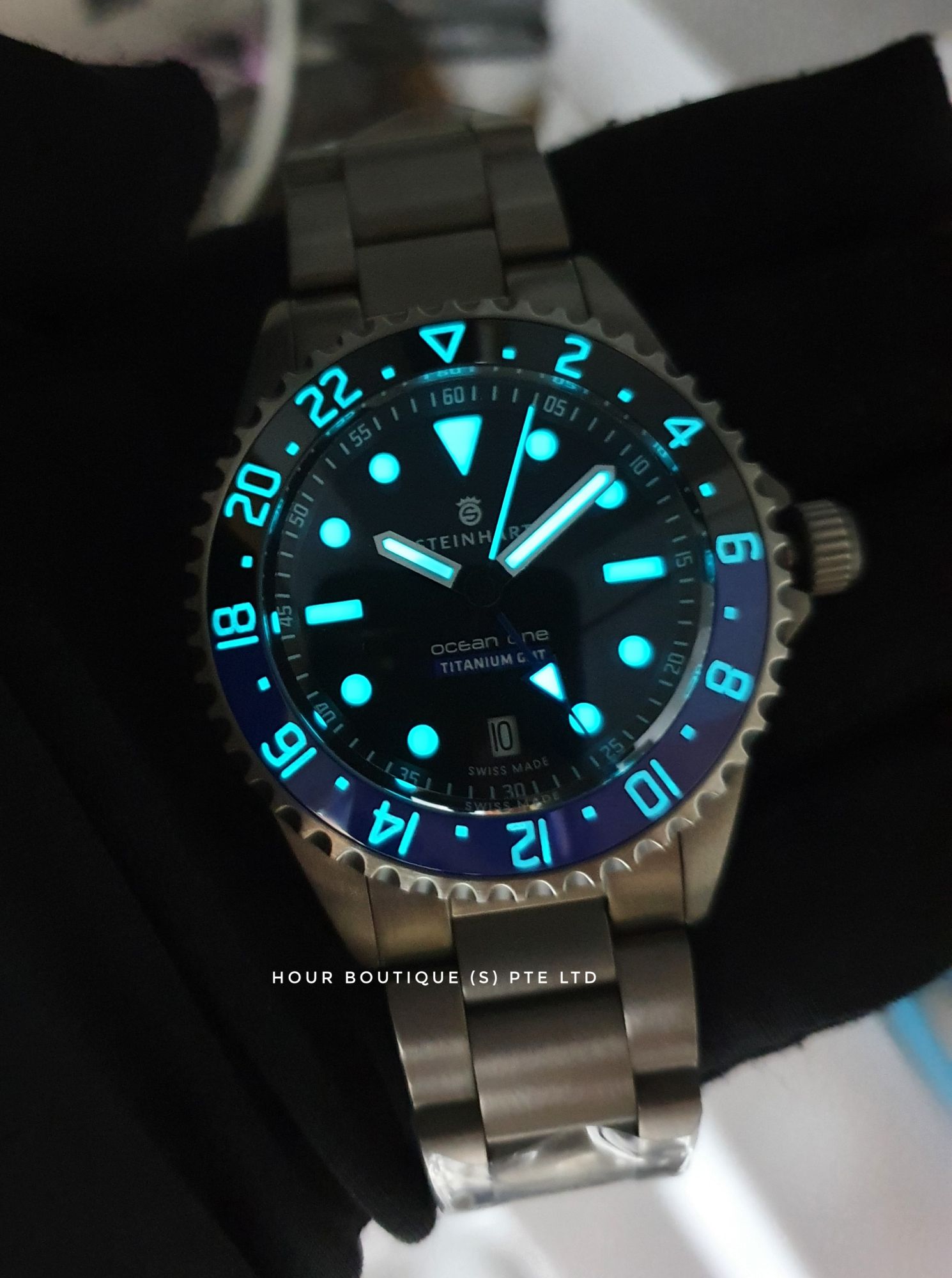 Swiss Made Steinhart Ocean 1 Titanium Black Blue Ceramic Bezel GMT Men's Automatic Divers Watch