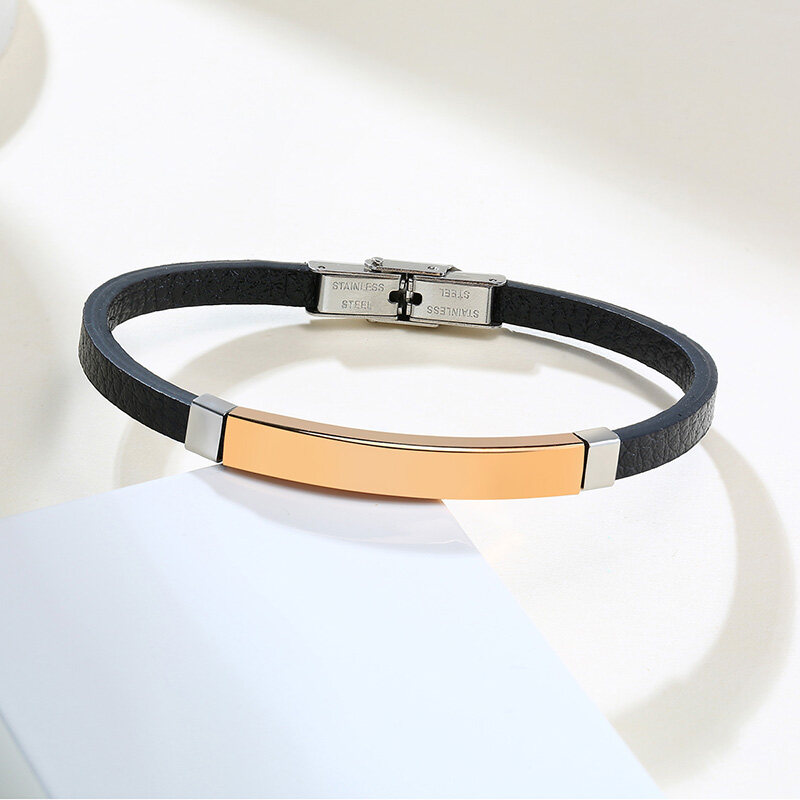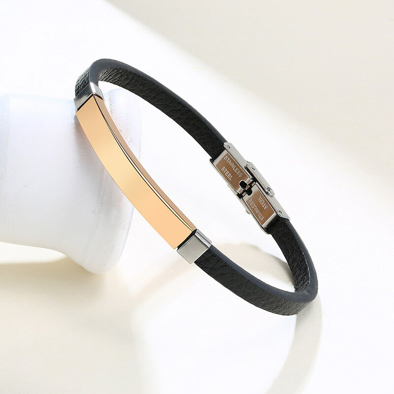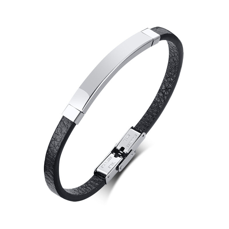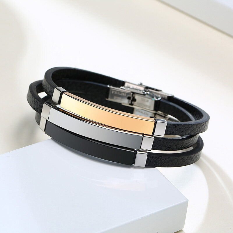 Vnox Personalized Engraving ID Name Initials Men Genuine Leather Bracelet Custom ID Jewelry Gift Father Son Birthday Gift