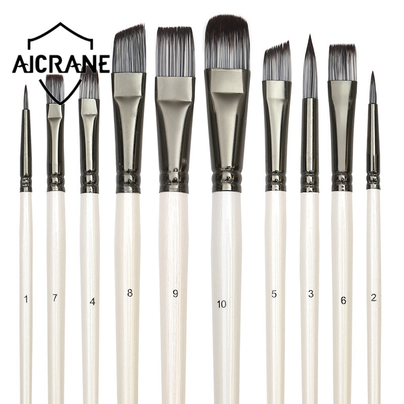AICRANE 10PCS Nylon Tips Paint Brushes Set for Art Acrylic Gouache Oil Watercolor Artist Canvas Synthetic