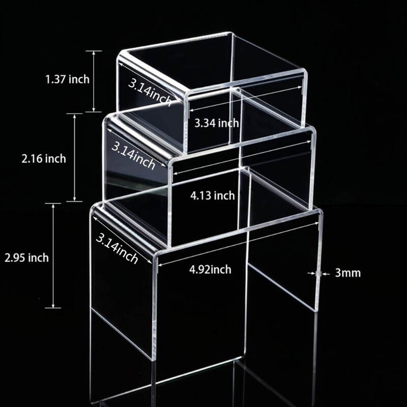Acrylic Display Risers 3 Size Steps Acrylic Display Stand Anti-Corrosion Clear Showcase Display Shelf for Figure Collection Jewelry Cup Cake Buffet