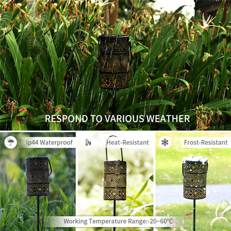 • 【BEAUTIFUL MOOD LIGHTING】 This lovely solar lantern is designed to embellish your outdoor space. With the night coming, it casts a white light that forms a pretty shadow around it and creates the perfect amount of ambient mood lighting. These are such a wonderful decoration to your garden, trees, courtyard, deck, patio etc. It has two ways to use it: grounding method and portable/hanging mode.