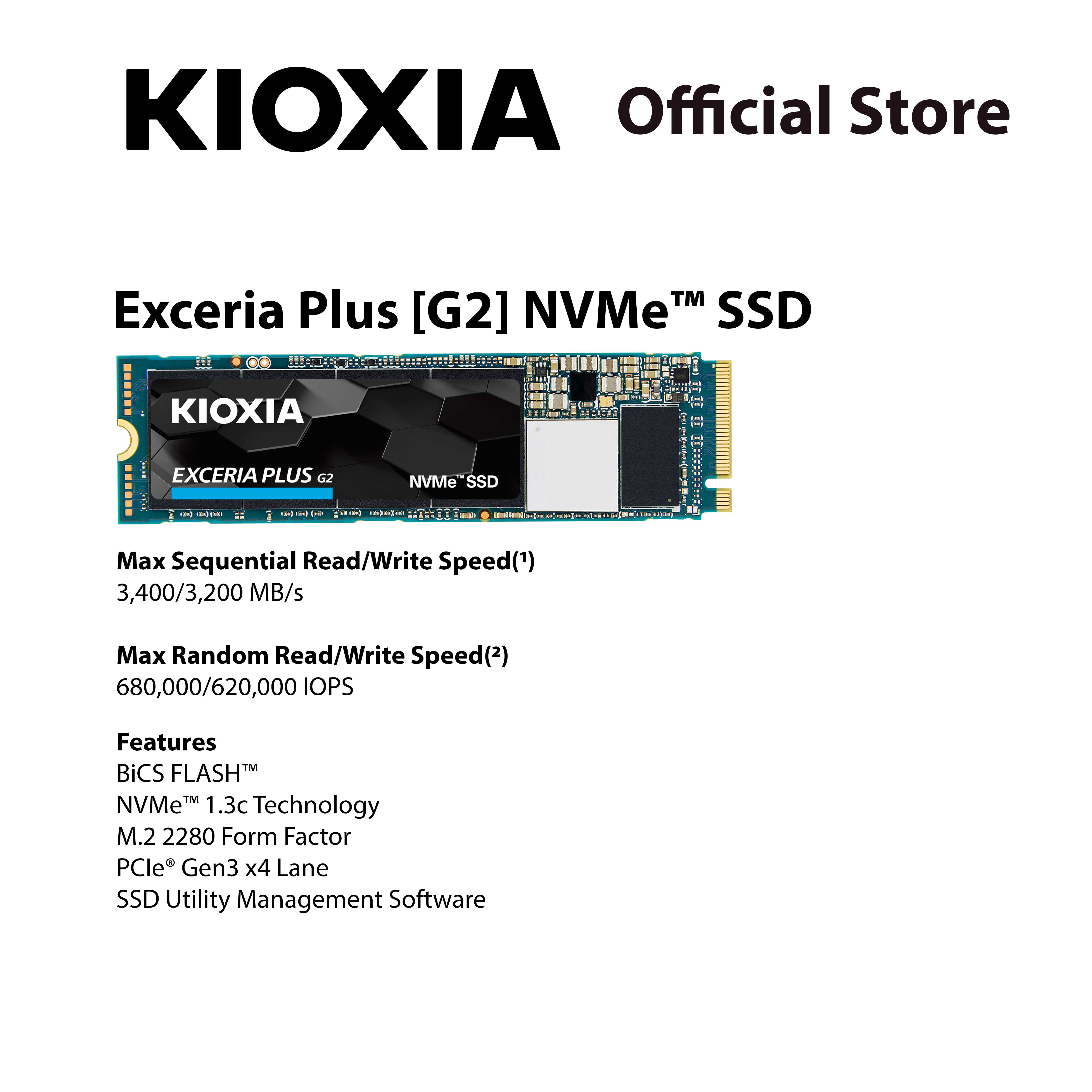 KIOXIA EXCERIA NVME Plus G2 SSD M.2 Type 3400MB/s - 500GB 1TB 2TB - from JAPAN **FREE ORICO M.2 NVMe SSD ENCLOSURE (Worth $39) w 1TB or 2TB Purchase**