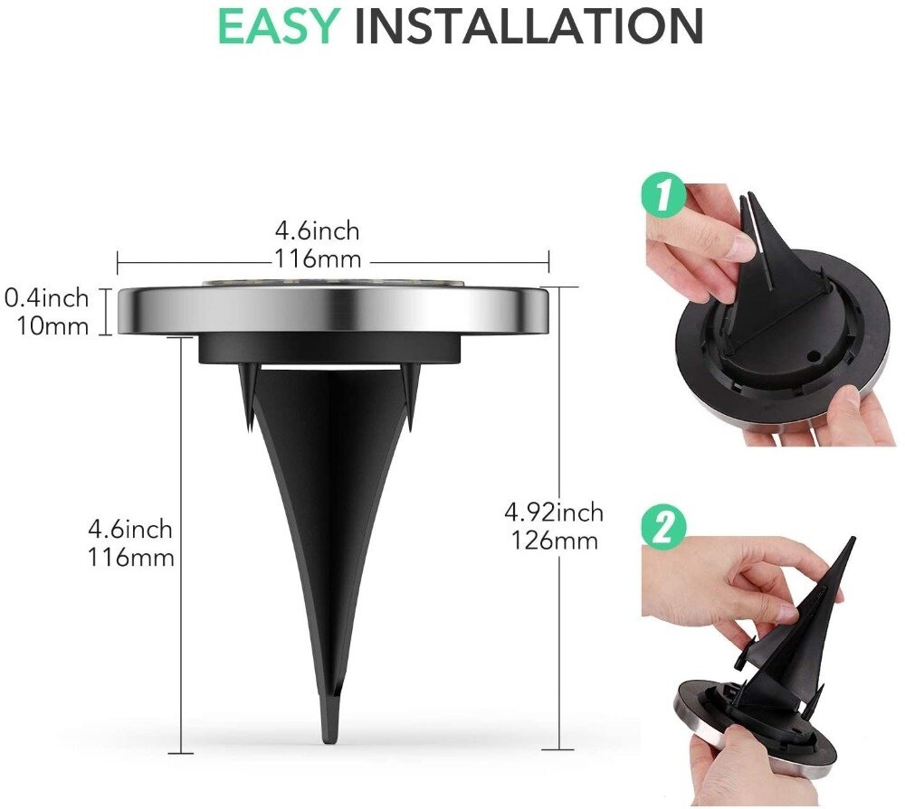 Description: 1 Comes with Automatic Dusk and Dawn Sensor and No Wired Required: Solar Sunlight Ground Lights automatically illuminate when the night is turned on and off automatically when the sun rises. And safe to use around children and pets 2 Updated Inground Led Lamps for Lawn and Garden Yard: 20 LED Bright Solar Lights: Unlike Other LED Solar Lights, 20 LED Ground Lights, which means producing more light for your path 3.Ideal for areas where conventional power supply is not available. 4 provides lighting for any place: No need to replace the wiring or batteries, use free solar energy! It helps light up your path, making it safer, but also adds a beautiful accent to the night landscape.