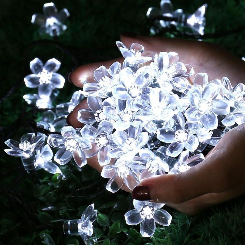 ♥Ready Stock +Limit Free Shipping ♥LED Solar String Light 12m 100 LEDS Peach Flower String Fairy Light Outdoor Garden Christmas Party Decoration Solar Lights