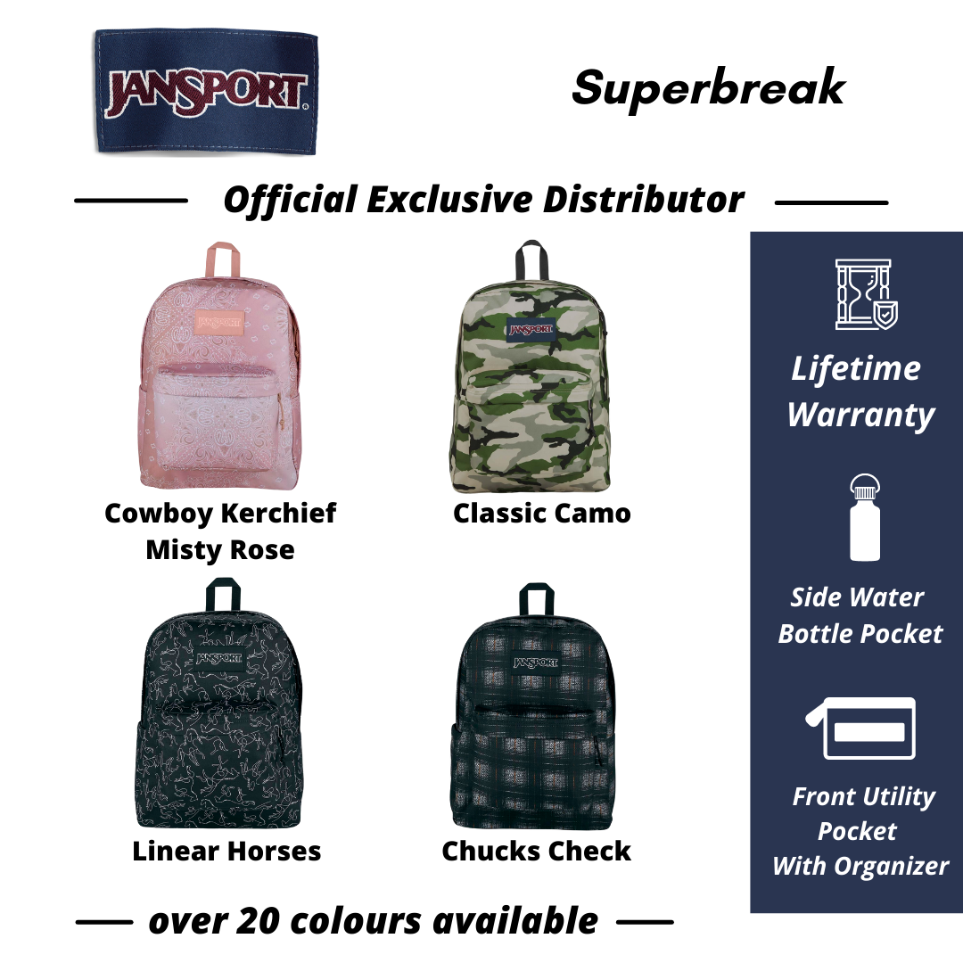 DETAILSFeaturing its classic silhouette, the JanSport SuperBreak is ultralight for everyday use. The backpack is available in more than 30 different colors and prints, perfect for every style of self expression.