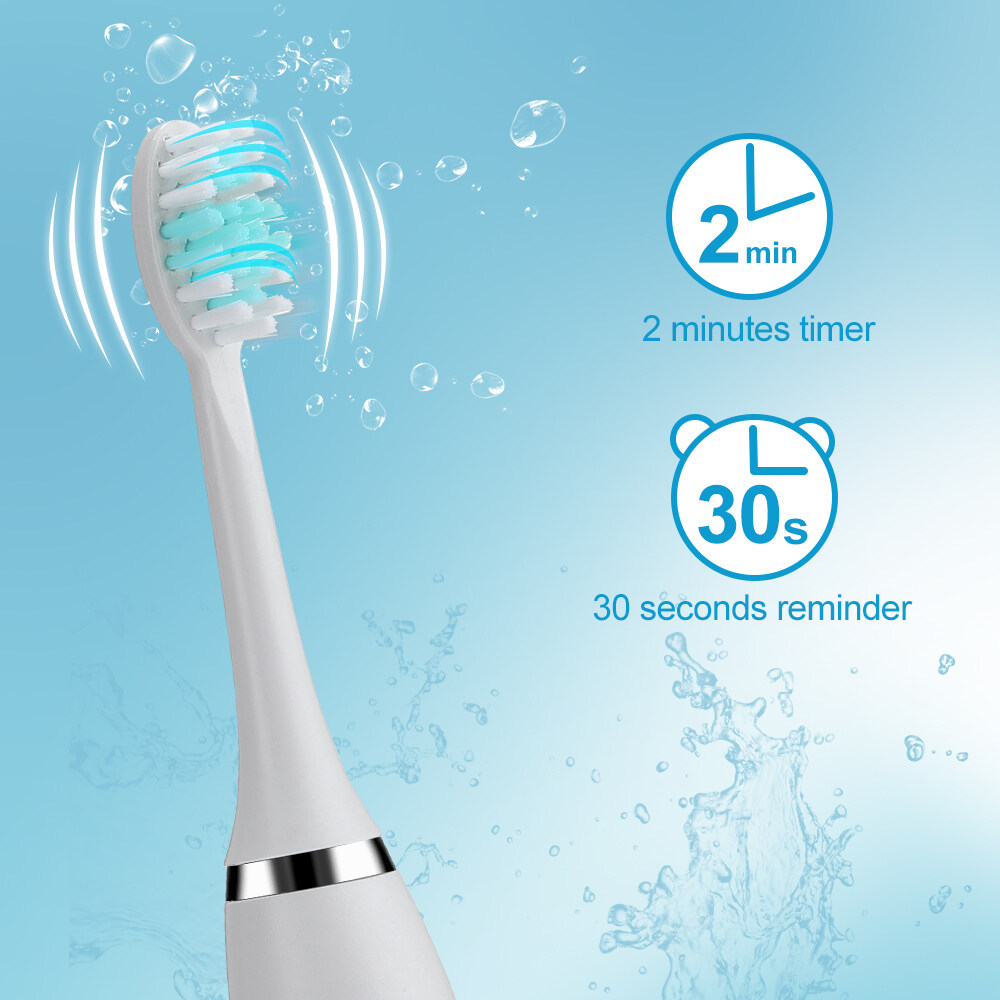 Ultrasonic Electric Toothbrush Rechargeable Teeth Cleaner Whiten IPX7 Waterproof with Replacement Brush Head for Adults Kids