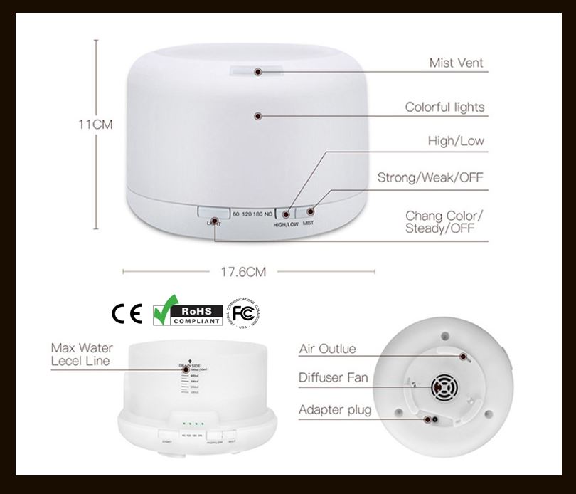> Humidifies dry air and Diffuse essential oils