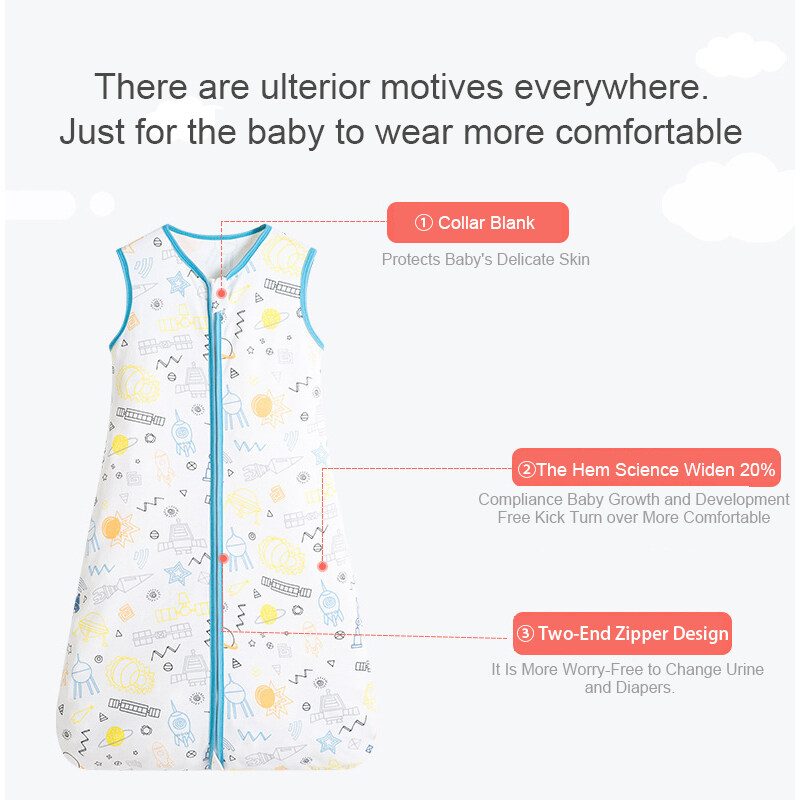 Breathable Cotton Baby Wearable Blanket with 2-Way Zipper, Super Soft Lightweight Sleeveless Sleep Bag Sack Clothes for Boys & Girls, Fits Toddlers 1 - 6 Age