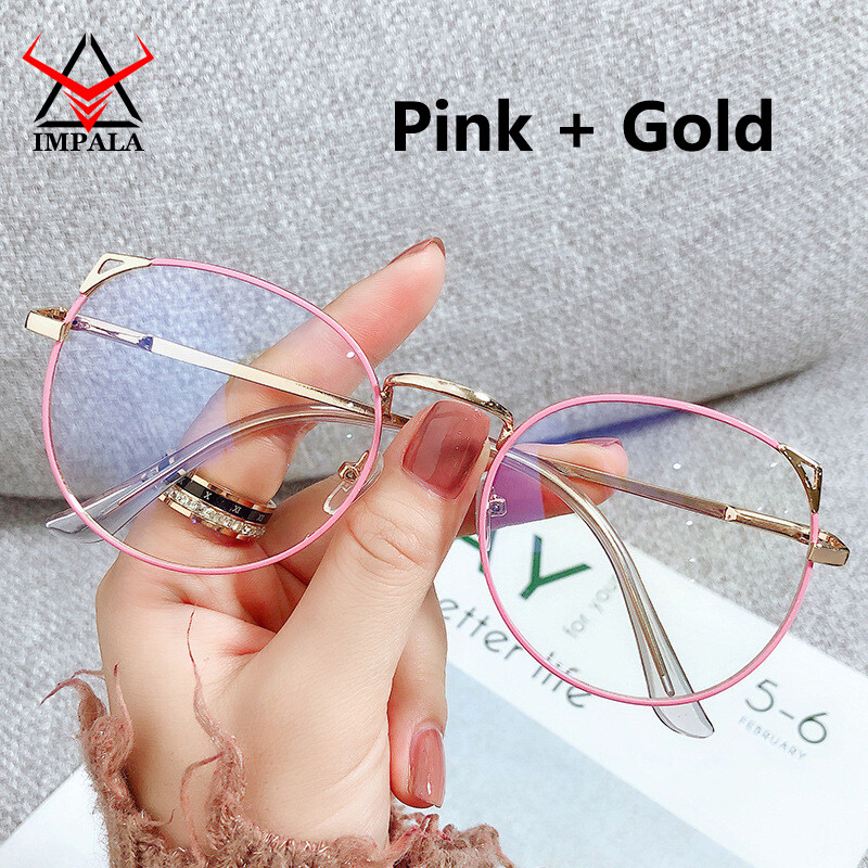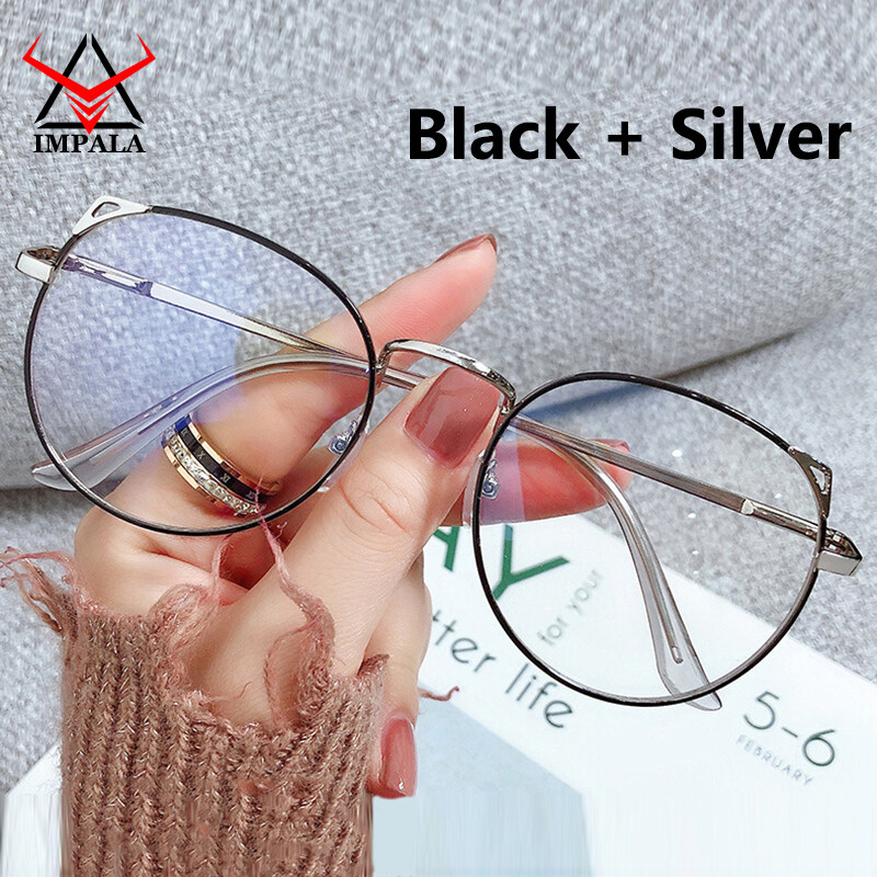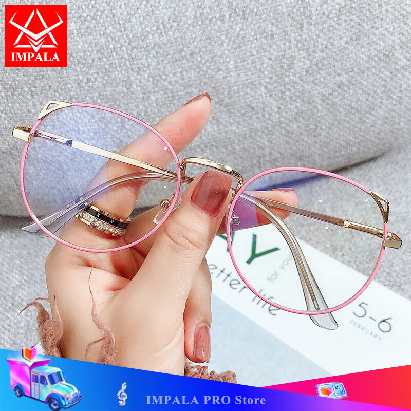 IMPALA FL1617W Cute Cat Ear Anti Blue Glasses for Girl Korean Style Anti Fatigue Eyewear Women UV400 Filter Resin HD Lens Glasses Protect Eyes