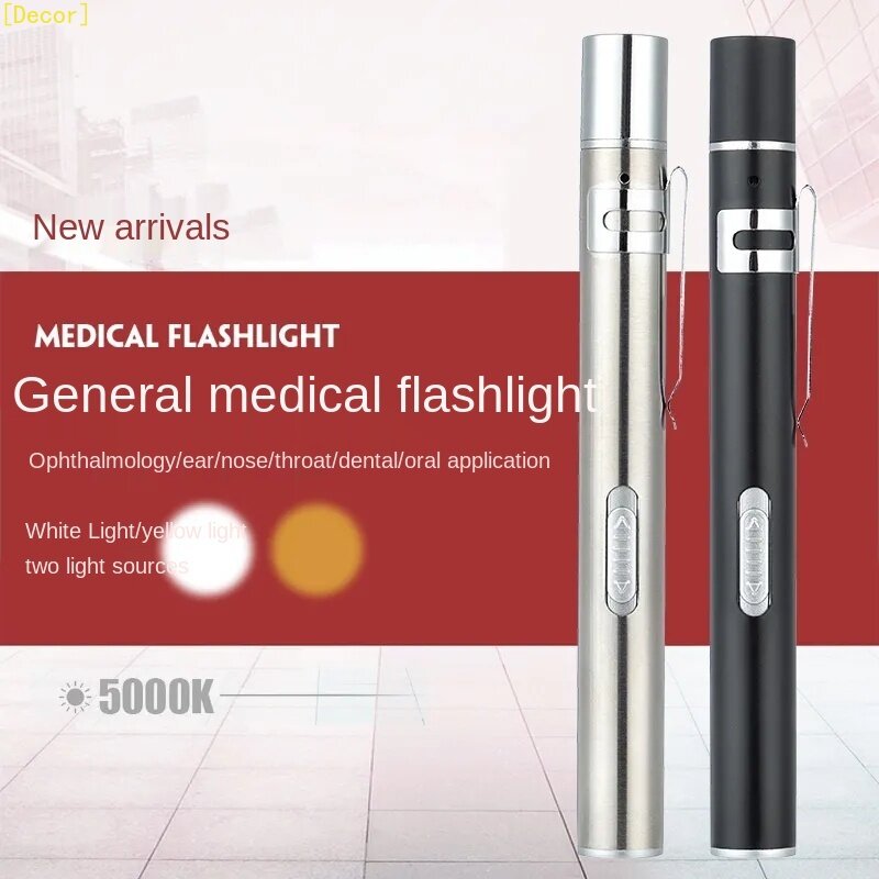 Scope of application: medical pen light, white light color clear for otolaryngology, sore mouth examination. The yellow light color is suitable for ophthalmology. Portable pen holder for easy carrying.
