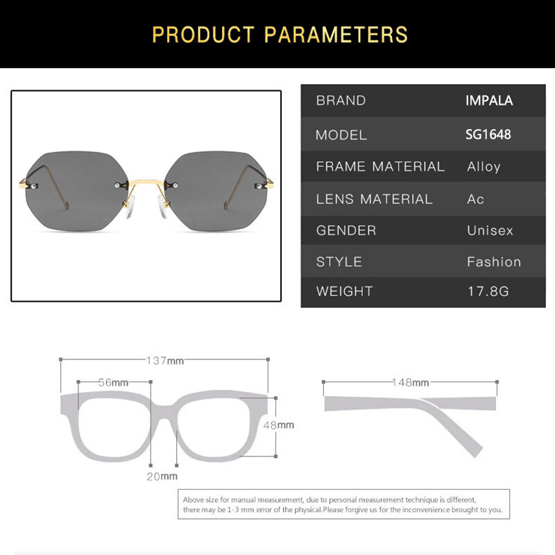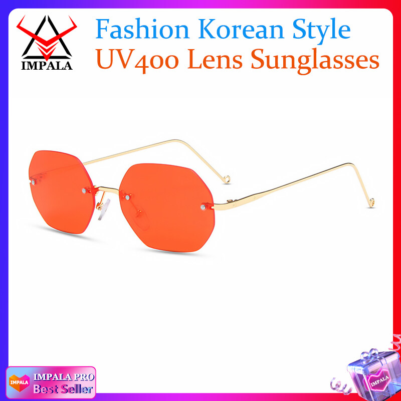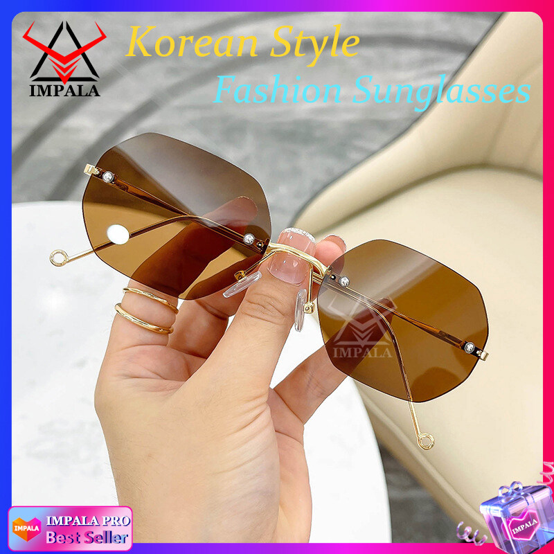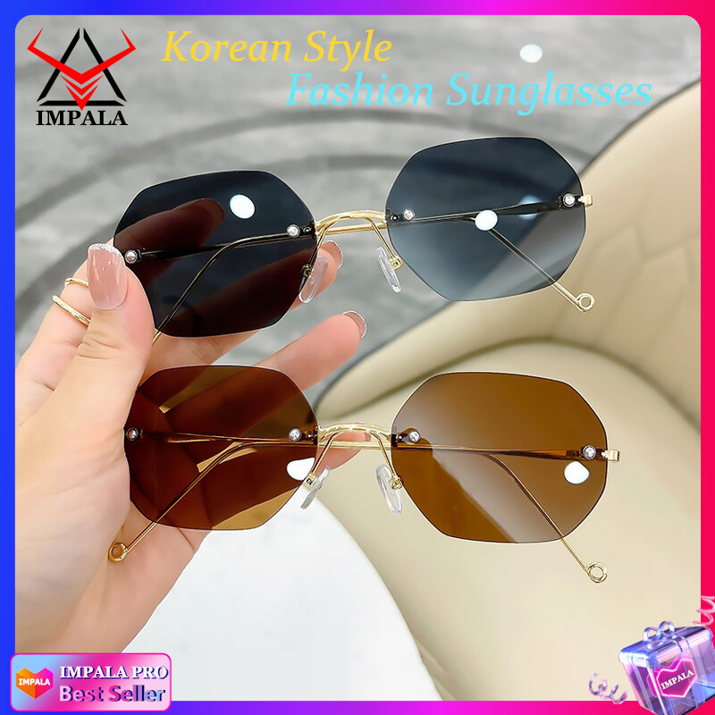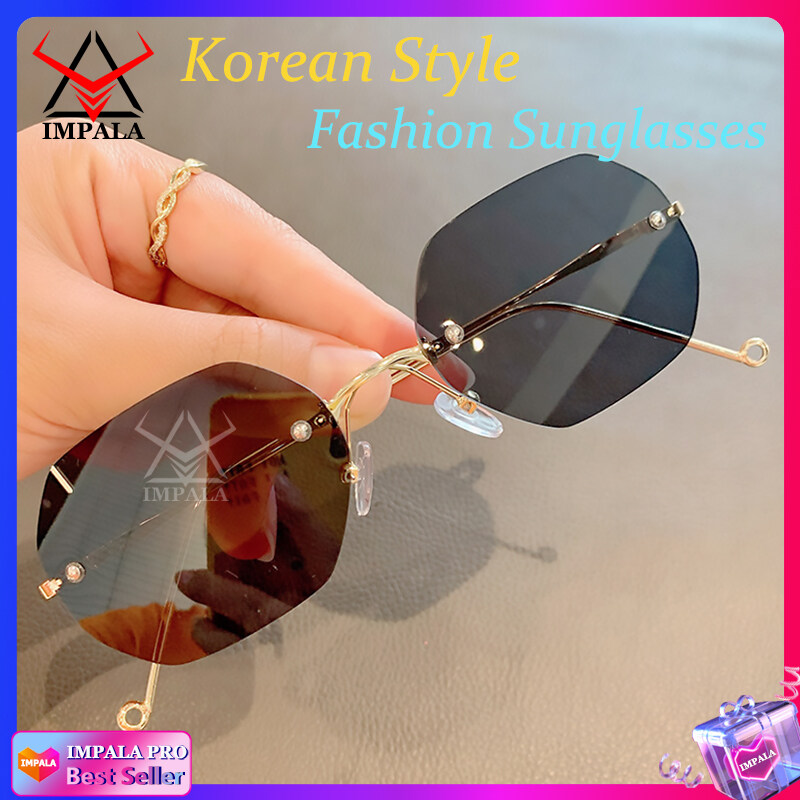 IMPALA QT1648W Korean Style Sunglasses for Men Women Rimless Shades UV400 HD Lens Anti Glare Fashion Sun Glasses Male Female Driving Traveling Eyeglasses