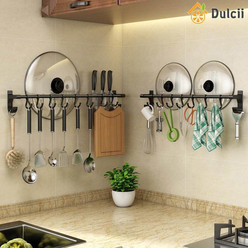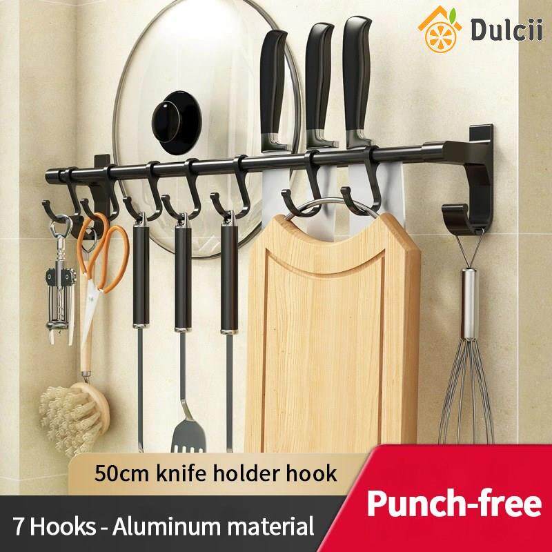 Dulcii 1PCS No Drilling Space Aluminium Kitchen Hooks Rack Multifunction Wall Mount Kitchen Shelf Utensil Holder With Hooks Mug Storage Kitchen Tools Holder Wall Mounted Kitchen Organizer