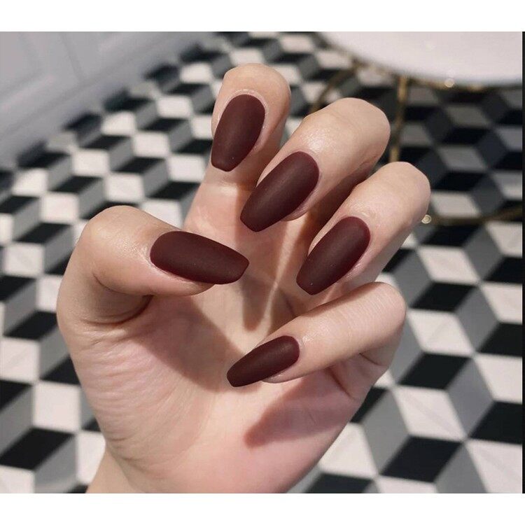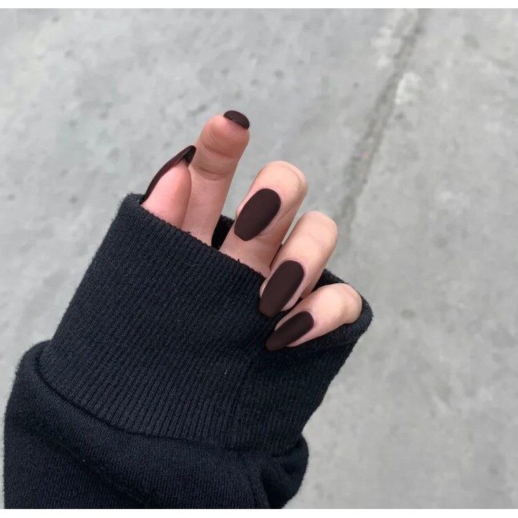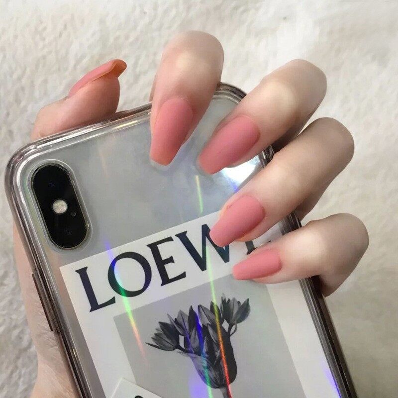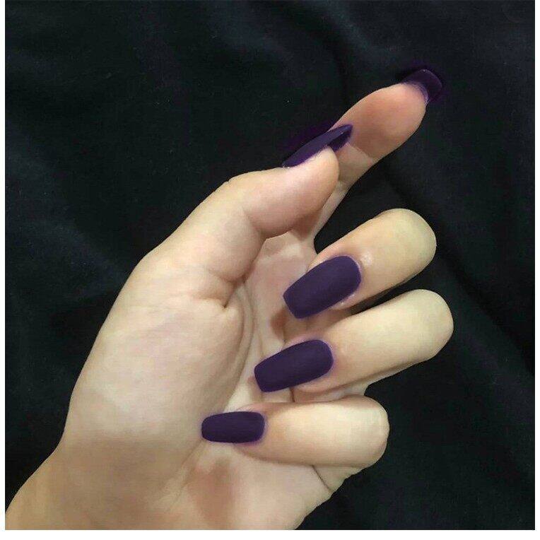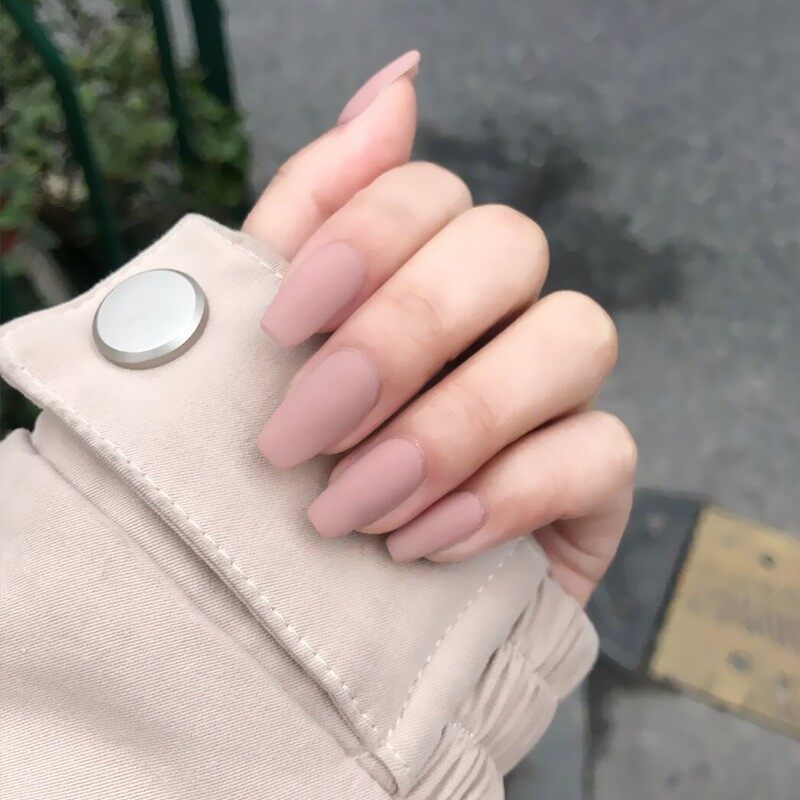 【With glue】24pcs fake nails matte matte fashion nail art finger fake nail art