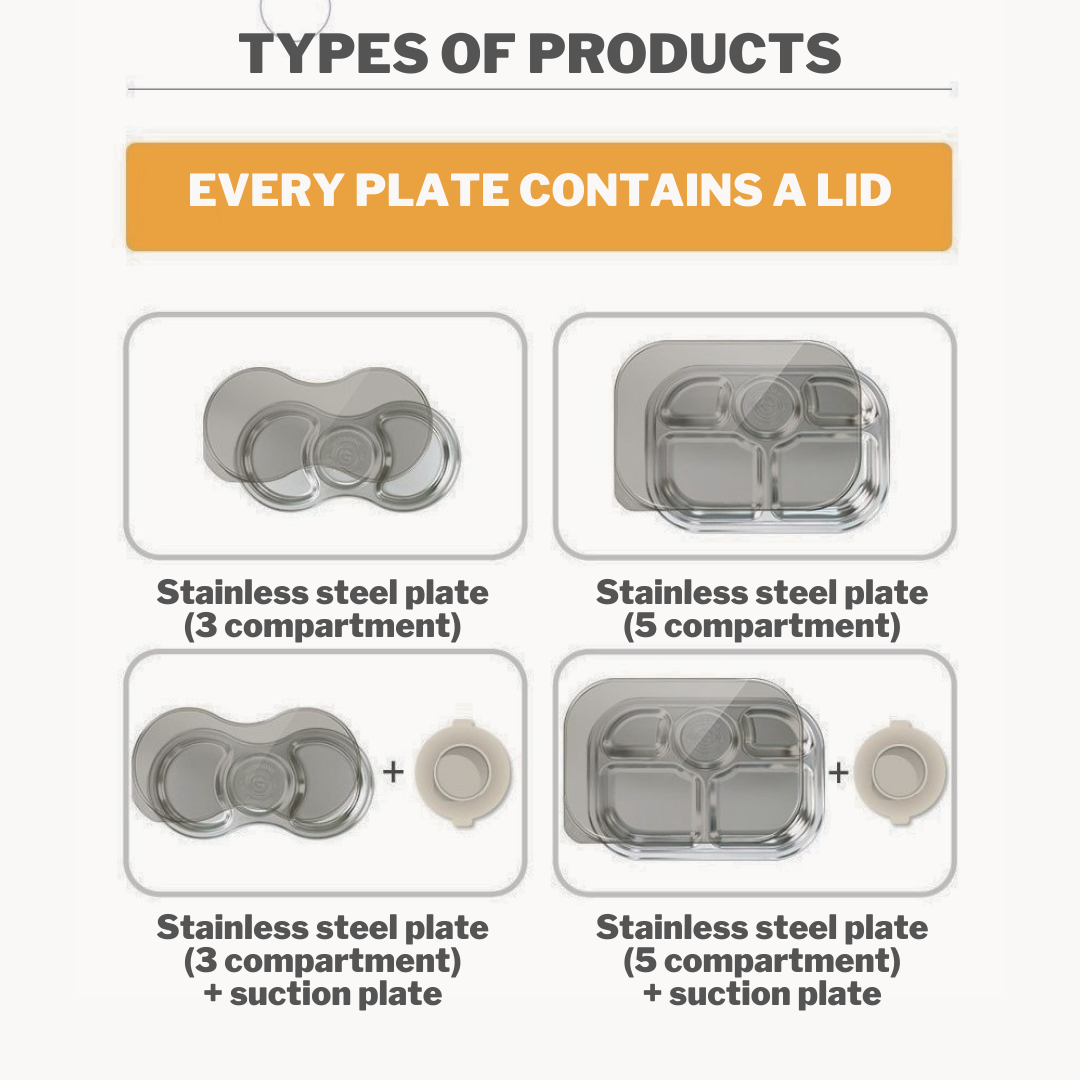 -Product made of food grade stainless steel SUS304, BPA free.-Consists of different compartment(3 sections or 5 sections).
