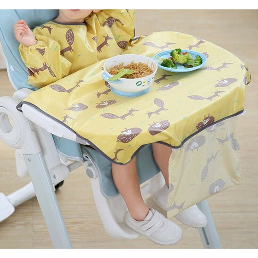 1. Long Sleeve Waterproof Bib:The one-piece baby bib is easy to take care of and Long sleeves and apron body offers full coverage.Bib attaches to highchair trays to keep food off babys clothes and floor. and the integrated design of the baby bib and table cover can effectively prevent food from falling into the gap between the baby and the dining table. Fast and easy to use.