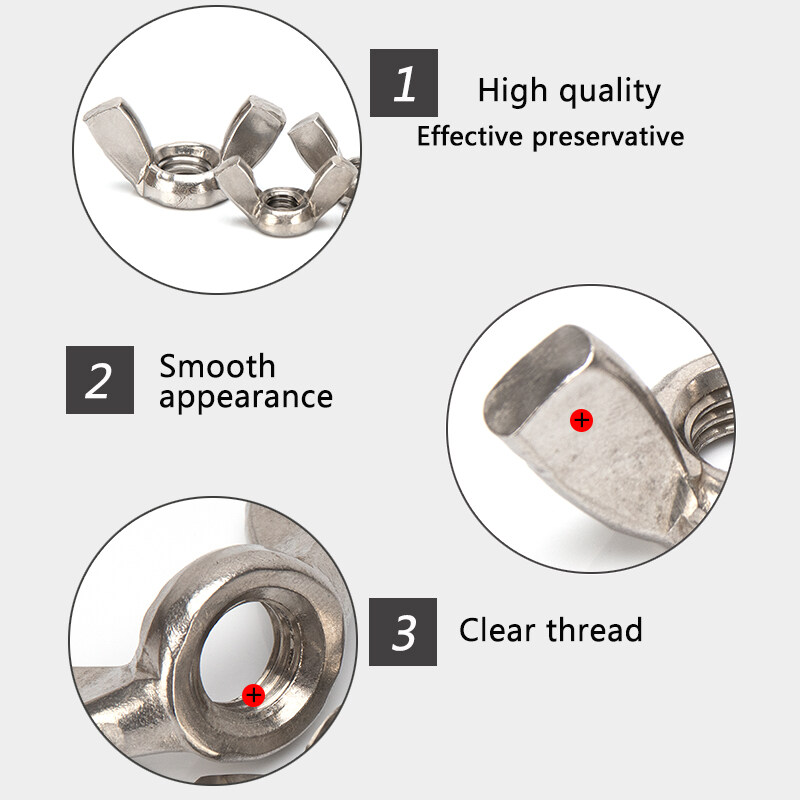 Ready Stock 304 Stainless Steel Wing Nuts Butterfly Nut to Fit Bolts & Screws M3 M4 M5 M6 M8 M10 M12 Solid Fasteners Nuts DIY Tool Repair Parts