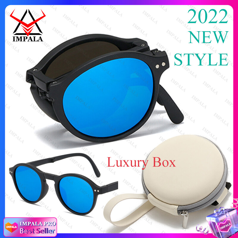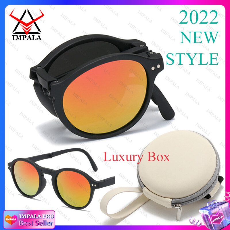 IMPALA QT2010Y Foldable Sunglasses with Luxury Round Case Anti UV Anti Glare Sunglasses for Women UV400 Protection Travel Sunglasses HD Lenses Exquisite Packaging