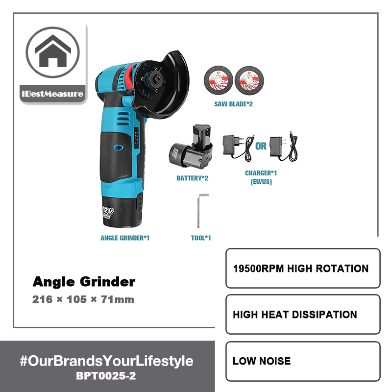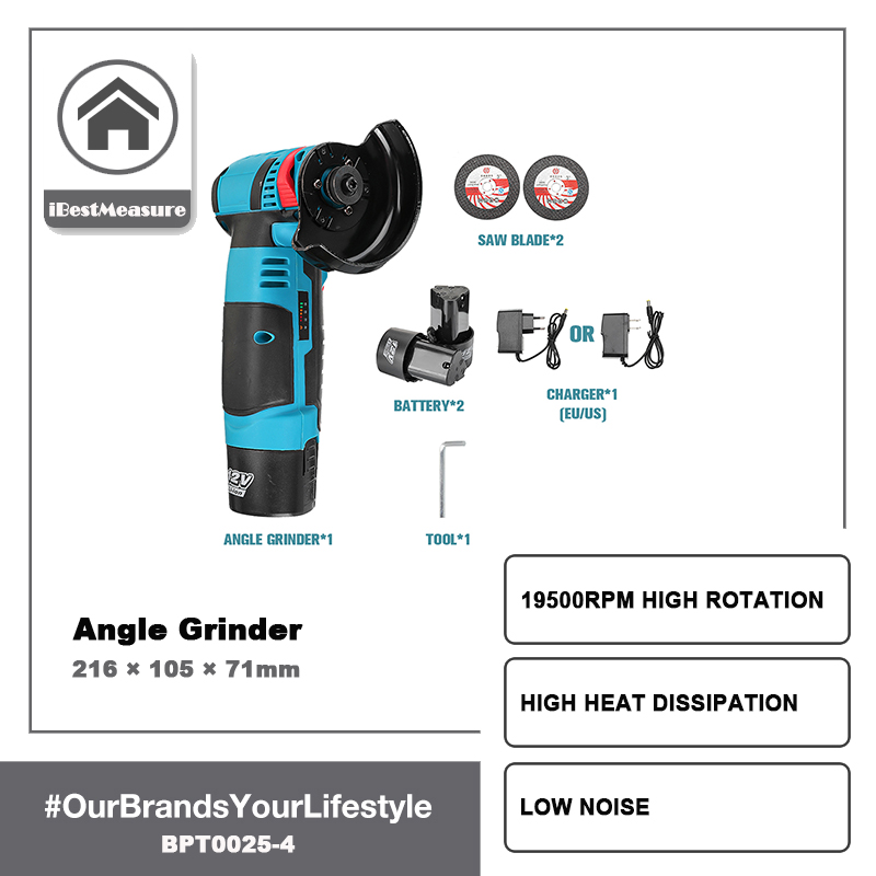 iBestMeasure 12V Brushless Angle Grinder Electric Cordless Polishing Machine Diamond Cutting Tool