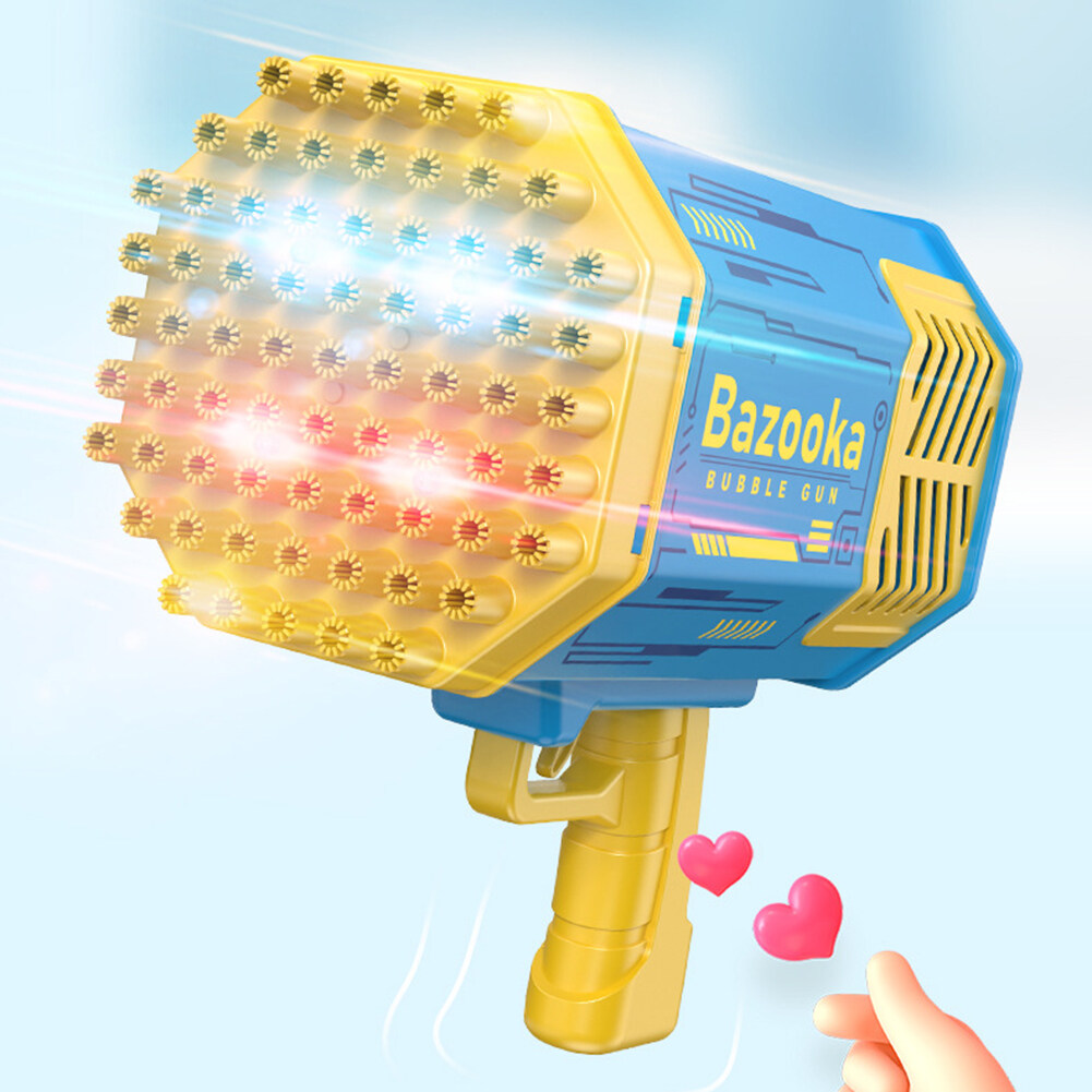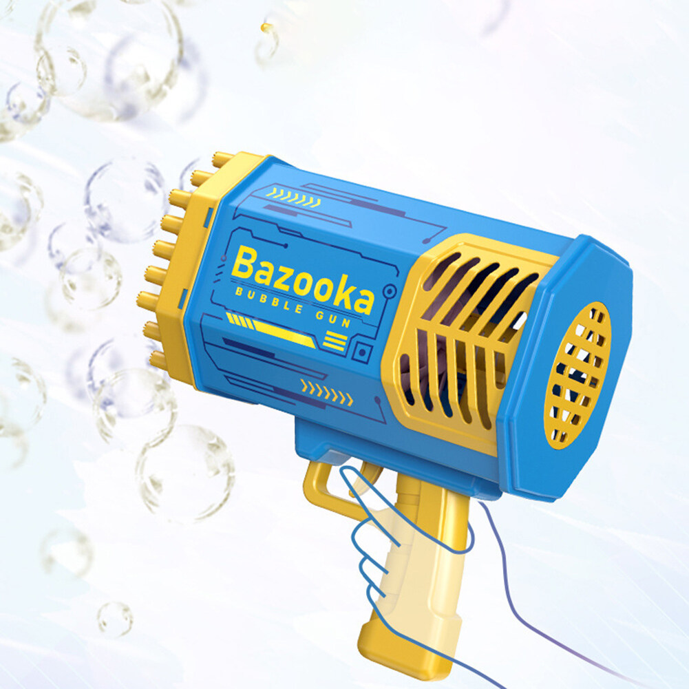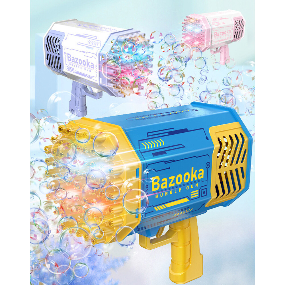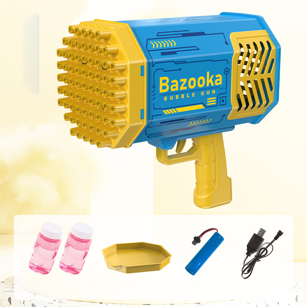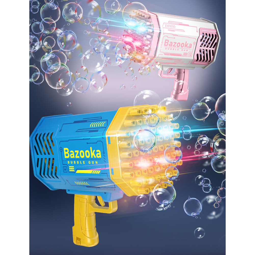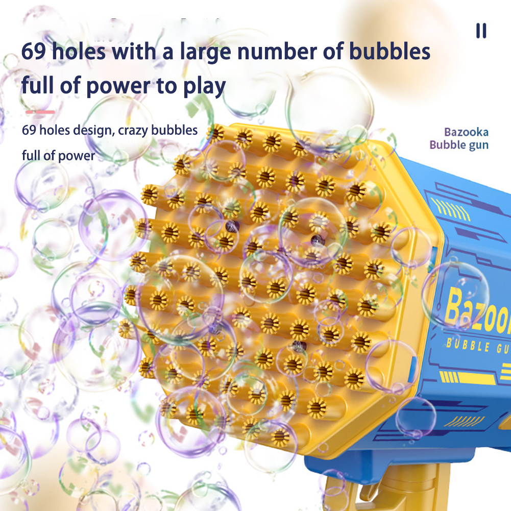 Features:--Abundant Accessories: Bubble Machine x 1, Bubble Liquid x 2, Battery x1, Charger x1, Tray x 1. Easy to clean and won't stick to your hands.--New Upgraded 69 Holes Design: The bubble machine has 69 bubble holes and can blow 2000+ colorful bubbles per minute. It is equipped with four colorful lights, which bring you amazing effects, no matter day or night, press the button, you can see the rich colorful bubbles being blown out, the fantastic lights render colorful bubbles, you can play in the Enjoy colorful scenes at night.--Most Popular Rocket Bubble Machine: Bubble machine is very popular among parents, kids and their followers. As a must-have tool for dates, birthday parties, stages, weddings, Christmas and more. It's the perfect prop for photos.--High-quality anti-drop material: The bubble machine is made of high-quality ABS material, with rechargeable battery, environmentally friendly, durable, safe to use, no sharp edges, thickened shell and anti-drop, so children can play with more peace of mind, very Perfect for kids to play and entertain as well as grown-up.--Eco-friendly material: Bubble machine made of ABS plastic material, safe, durable, lightweight and leak-free. Meets American toy standards. Security tested. Comes with a rechargeable 2200mAh battery, the foam is sustainable and eco-friendly! Remove the bubble head and turn it into a small fan, bringing cool and comfortable wind.--Ideal Gift: The Bubble Machine is an ideal gift for kids on any occasion. Such as bubble themed parties, entertainment, camping trips, beaches, birthday parties, carnivals, weddings, baby showers, halloween, BBQ, Christmas and many more.