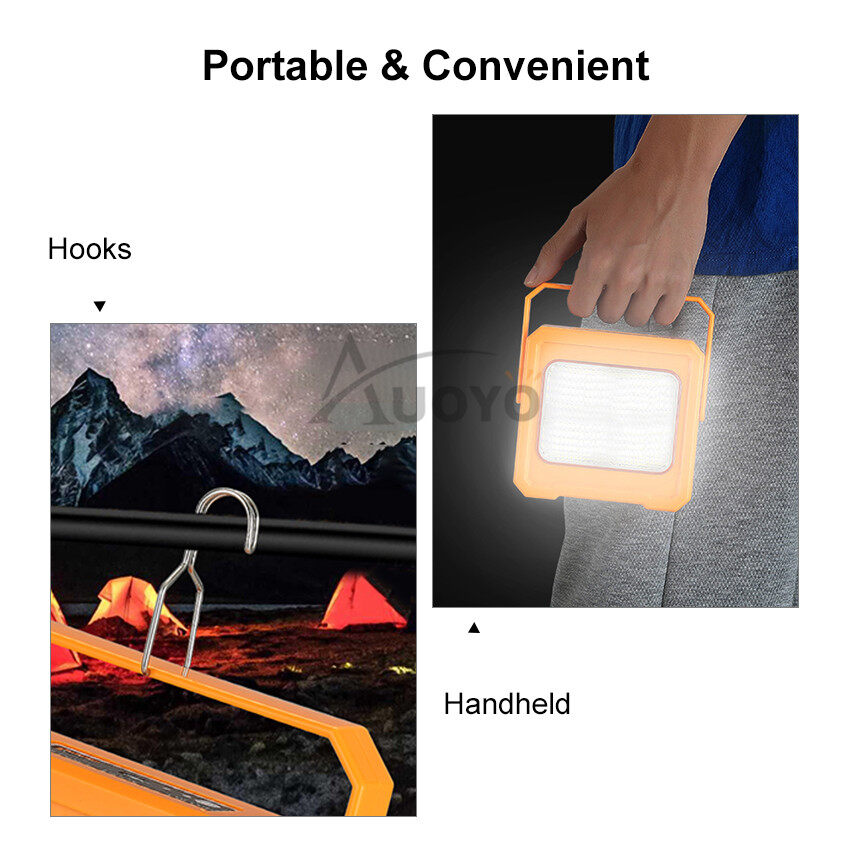 Auoyo LED Solar Light Portable Spotlight Solar Emergency Lights Outdoor Camping Light USB Rechargeable Work Light Waterproof Handheld Flashlight Hanging SOS Warning Light with Magnetic for Camping Out