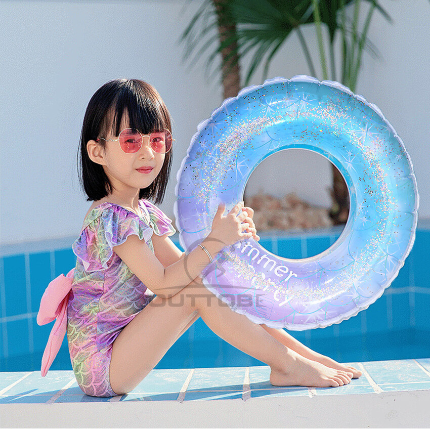 Outtobe Rainbow Swimming Ring Transparent Glitter Pool Floats Swimming Ring Adult Children Inflatable Pool Tube Giant Float Boys Girl Water Swim laps Swimming Ring with Handle