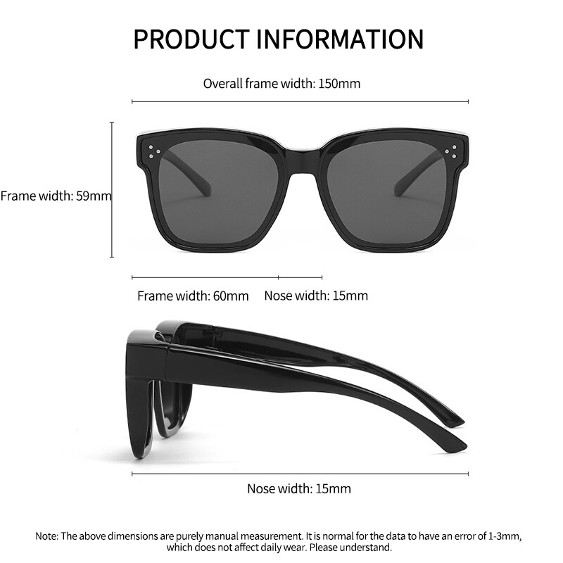 【Specification】 Product Name: Sunglasses On Myopia Glasses Gender: Unisex Brand: PTQ Glasses Style: Square Frame Glasses Structure: Full Frame Lens Material: TAC Frame Material: TR90 Whether Polarized: Yes Anti-UV Grade: UV400 Visible Light Transmittance: 99% Glasses Color: 7 Colors To Choose From Glasses Weight: 30g Suitable For Face Shape: Various Face Shapes Applicable Scene: Sun Protection, Outdoor Sports, Driving Style: Leisure