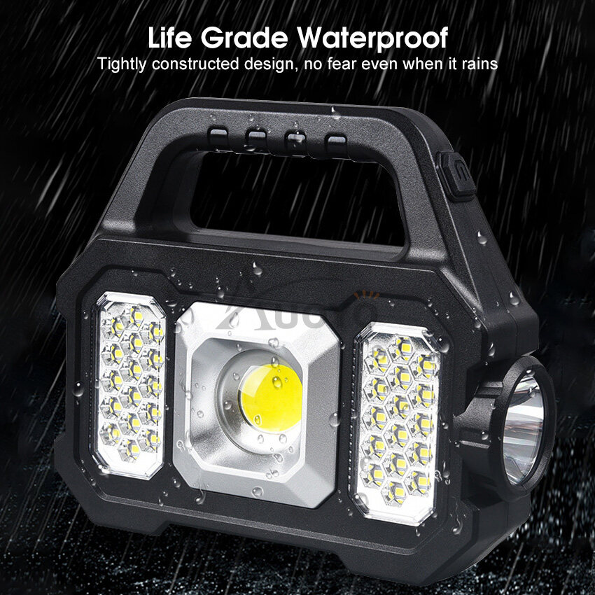 Auoyo Solar Outdoor Lights Led Work Light Portable Camping Light Handheld Emergency Lamp Floodlight Flashlight Spotlight SOS Warning Lighting Outdoor Waterproof Light USB Rechargeable Mobile Power Lam