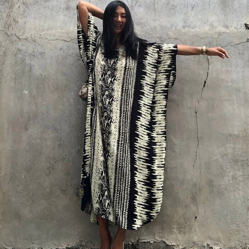 New Bikini Cover-ups Retro Snake Printed Self Belted Women Summer Dress Tunic Plus Size Beach Wear Swim Suit Cover Up