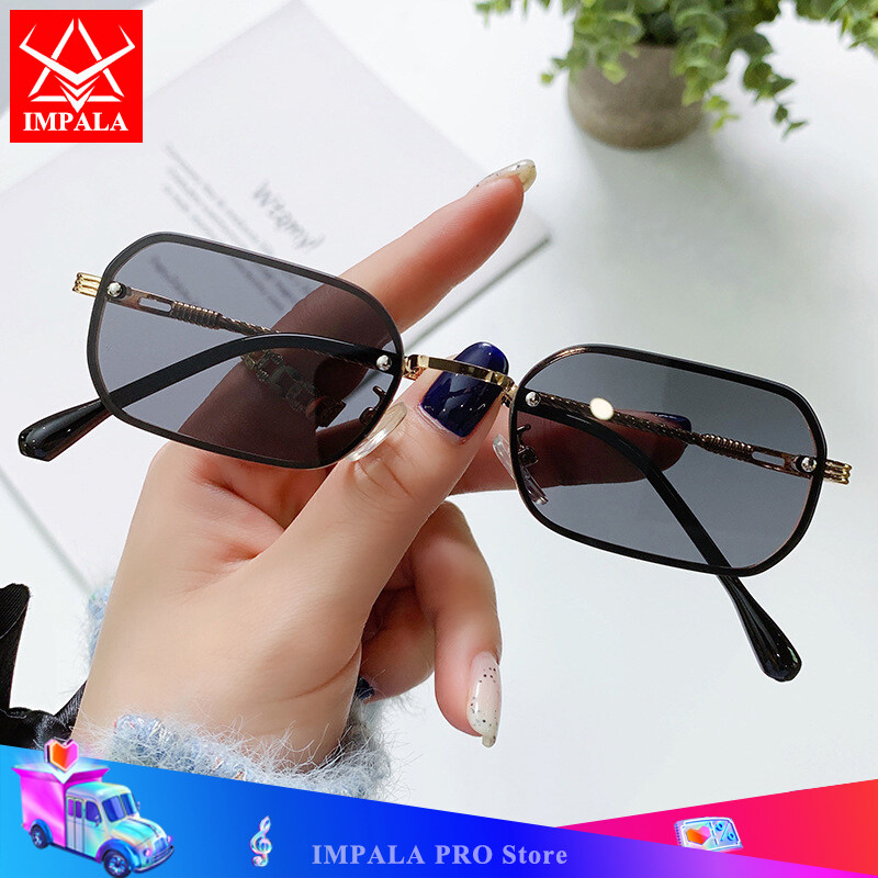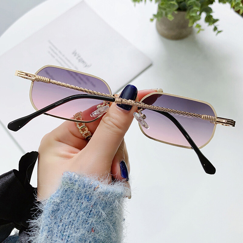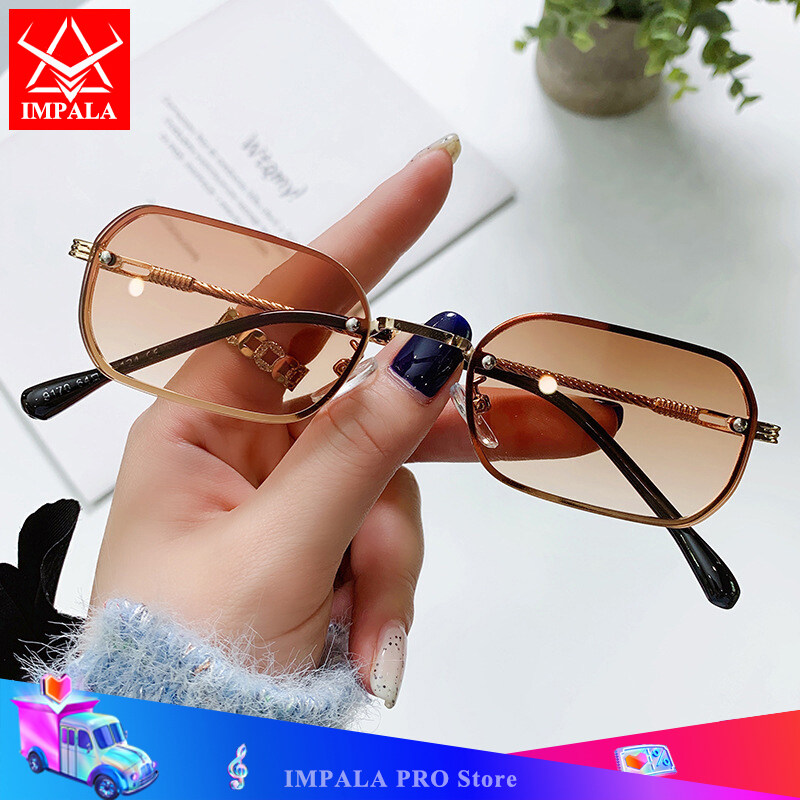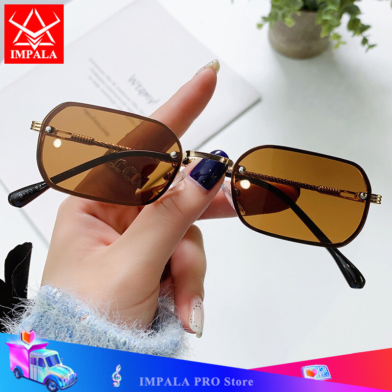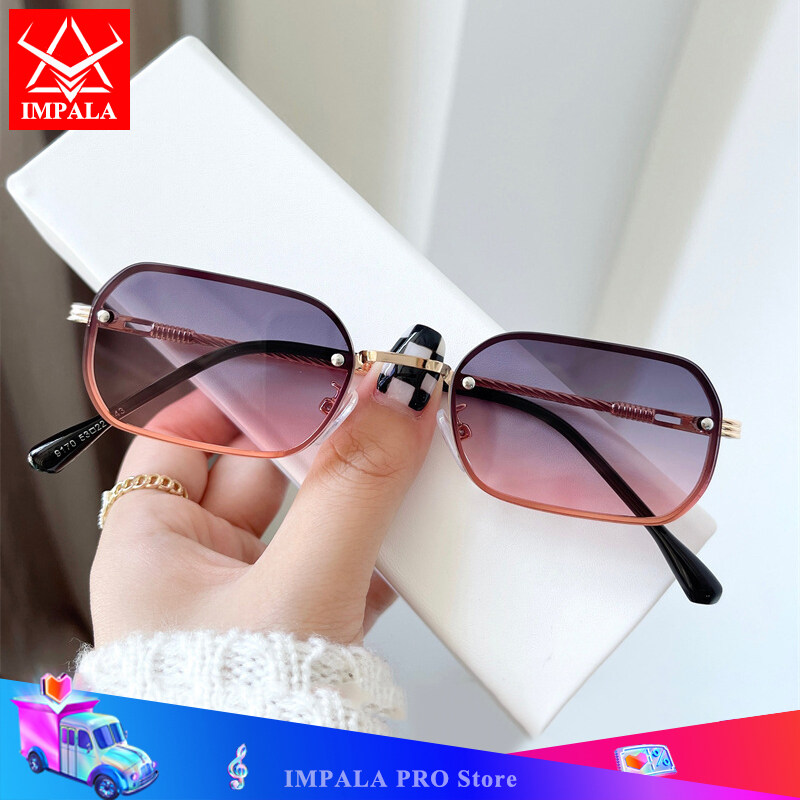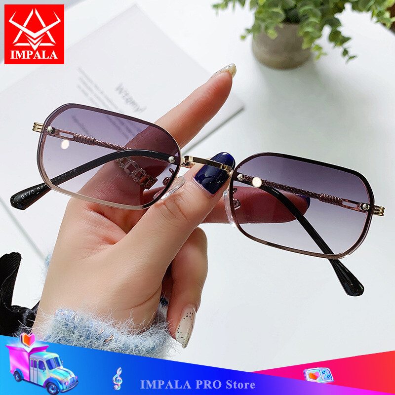 IMPALA QT1658W Fashion Rimless Sunglasses for Women Beautiful Metal Braided Temples Korean Style Colorful Small Lens UV Protection Sun Glasses
