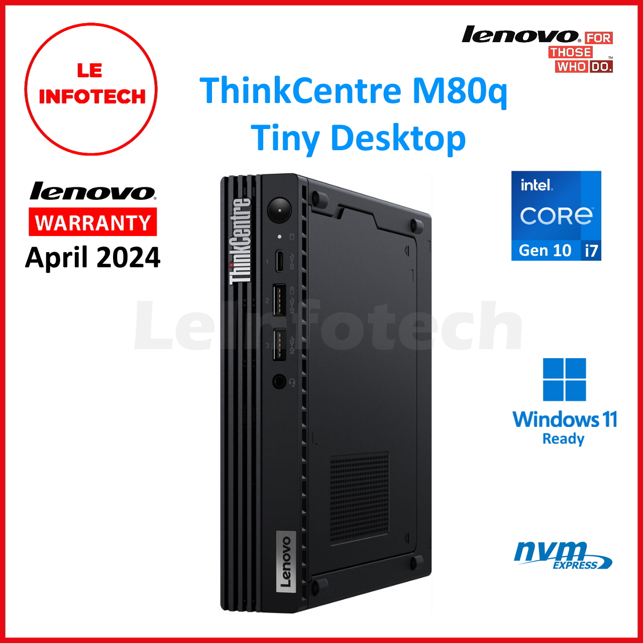 LENOVO ThinkCentre M80q Tiny Desktop 8-Core Intel i7-10700t 32GB 512GB SSD Win11 HDMI USB-C WiFi BT Warranty - Leinfotech