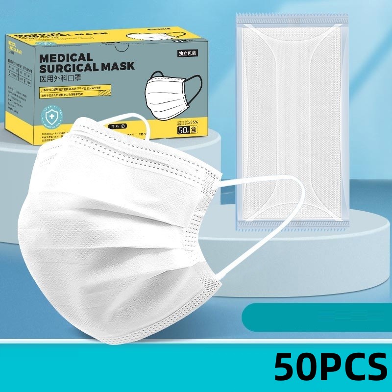 3 layers of medical surgical masks (50 pieces) individually packed