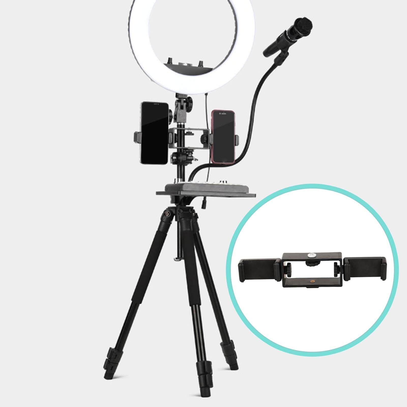 milageto Phone Tripod Mount Holder Adapter Adjustable Clip Clamp for Microphone Light