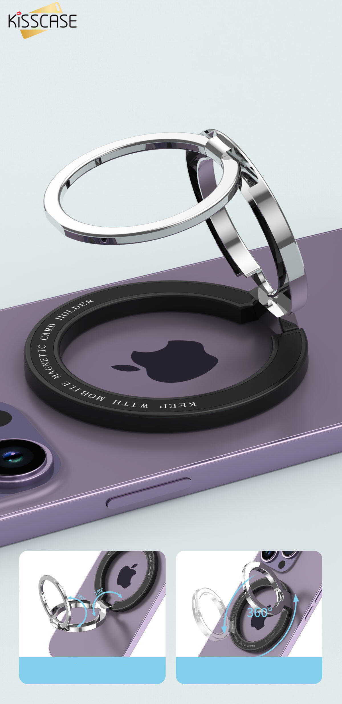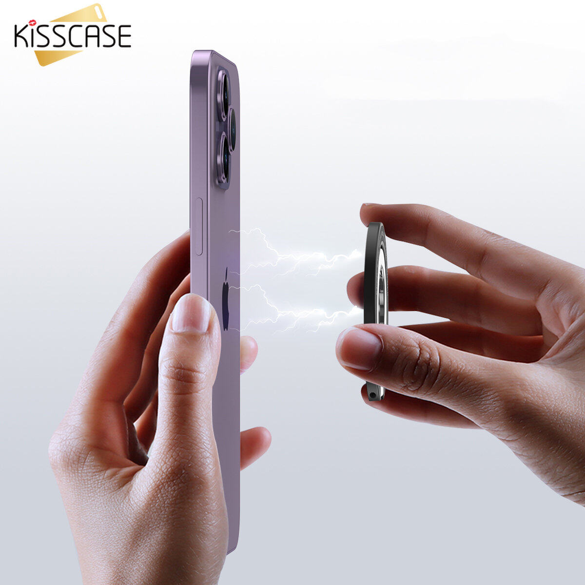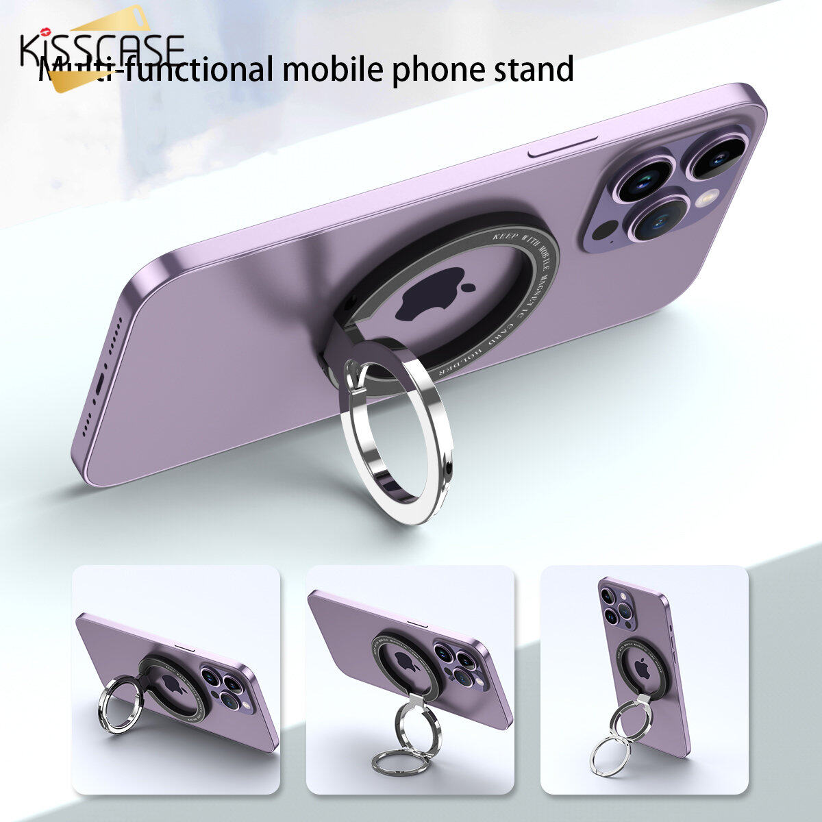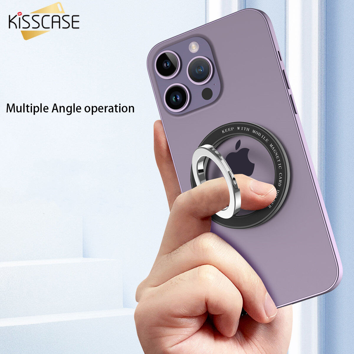 KISSCASE 360° Rotatable Foldable Magnetic Cell Phone Ring Holder Compatible For iPhone 14 Pro Max Plus 13 12 Series MagSafe Removable Cell Phone Metal Bracket Grip Kickstand