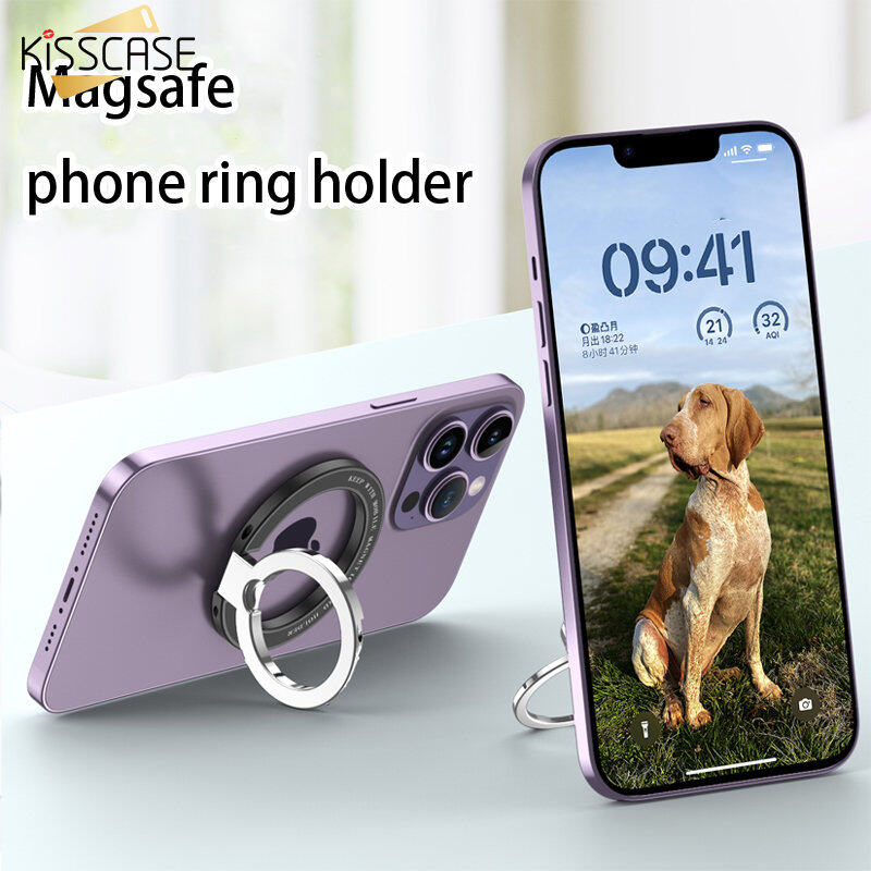 KISSCASE 360° Rotatable Foldable Magnetic Cell Phone Ring Holder Compatible For iPhone 14 Pro Max Plus 13 12 Series MagSafe Ring Buckle Removable Cell Phone Metal Bracket Grip Kickstand
