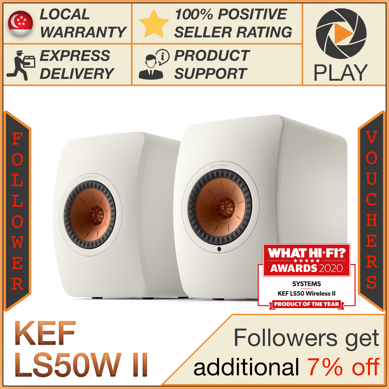 KEF LS50 Wireless II Active Bookshelf Speakers KEF LS50W II LS50W 2 (FOC installation)