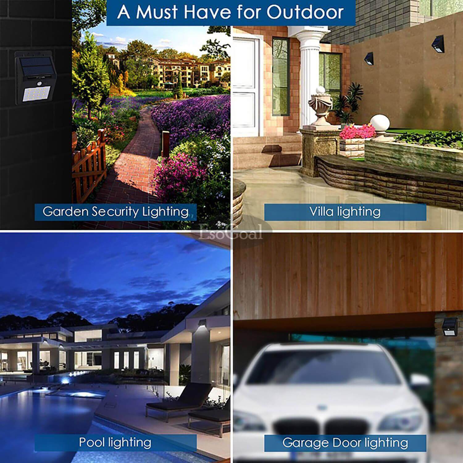[Promotion!] EsoGoal 35 LED Solar Lights Outdoor Lighting Waterproof Solar Powered Motion Sensor Light Wireless Security Lights Outside Wall Lamp for Driveway Patio Garden Path(Ready Stock)