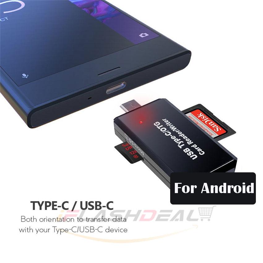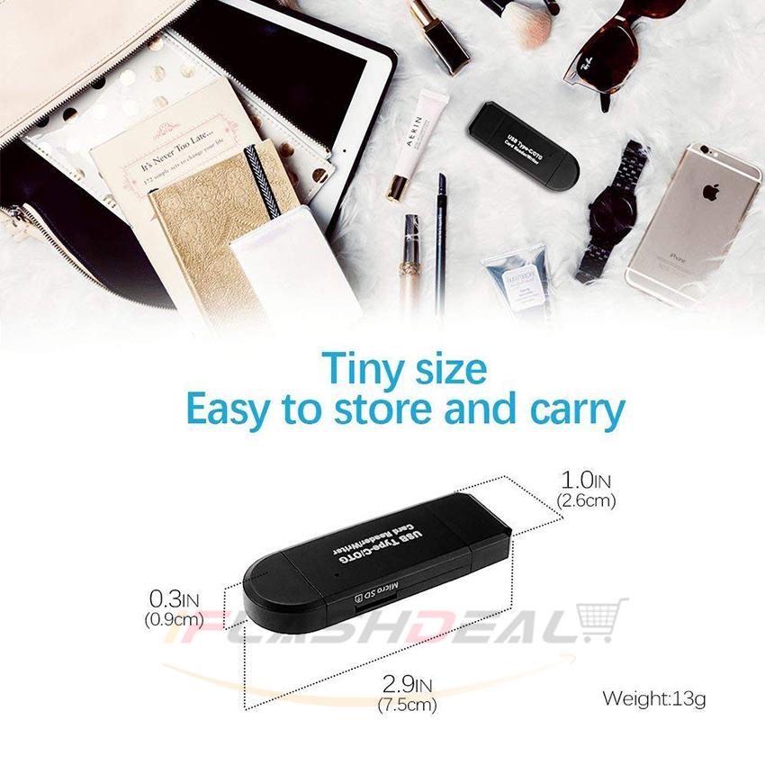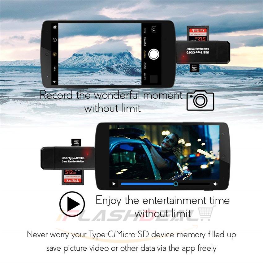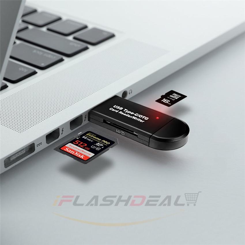 iFlashDeal SD/Micro SD Card Reader Writer USB 3.0 Memory Card Reader OTG Adapter Viewer Micro SD/TF Compact Flash Card Reader with 2 in 1 USB/Type C