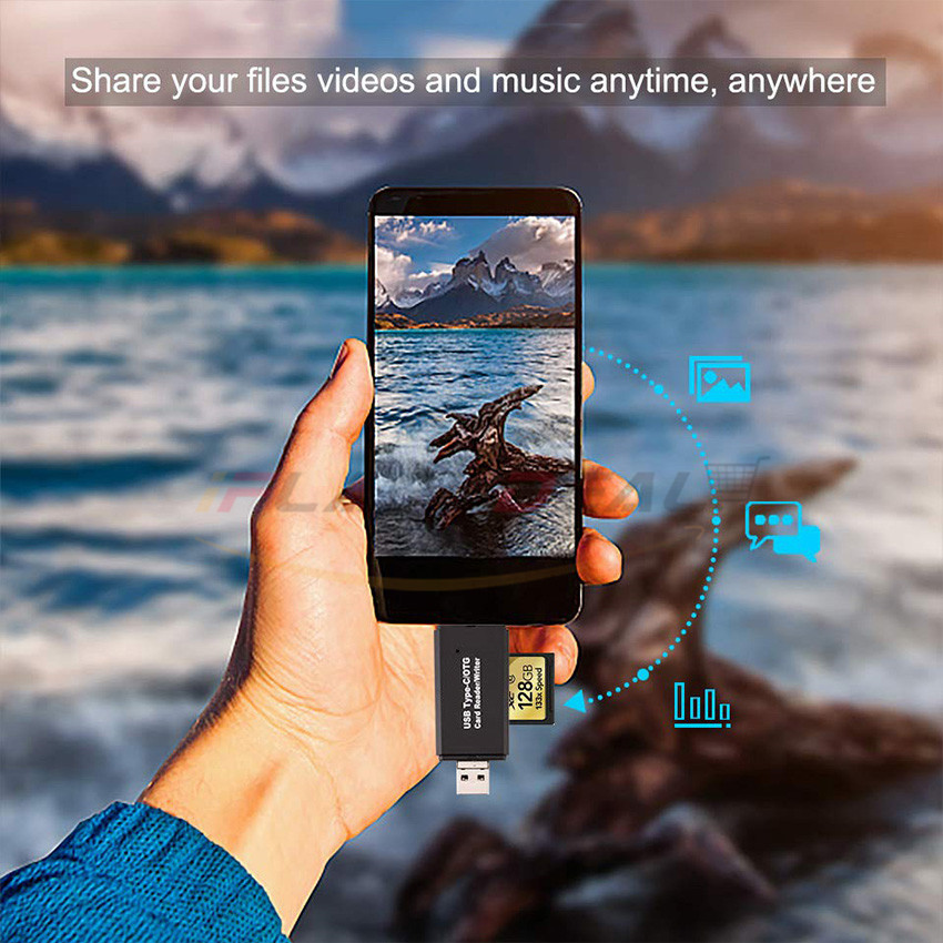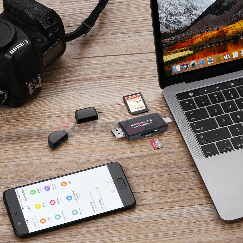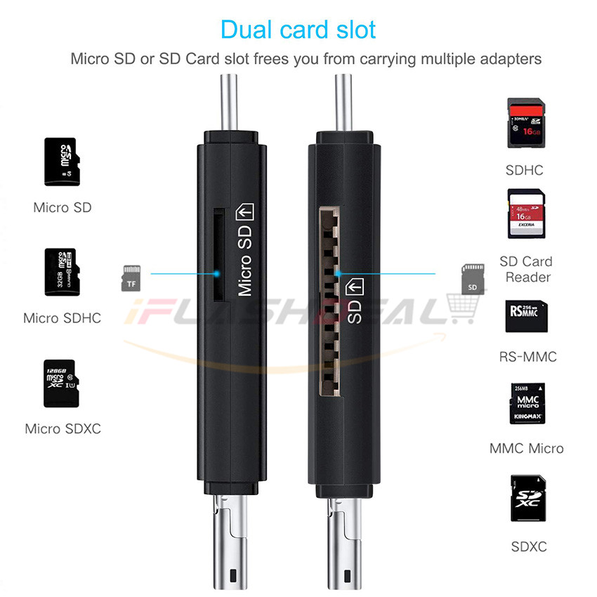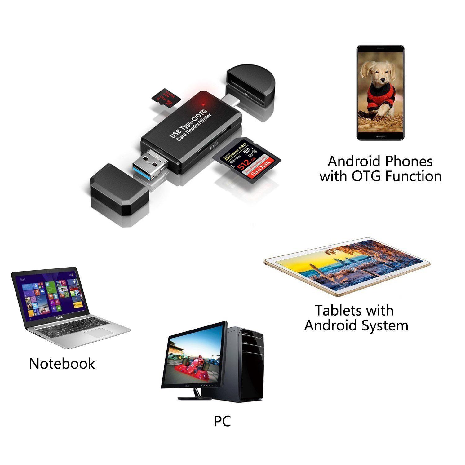 iFlashDeal SD/Micro SD Card Reader Writer USB 3.0 Memory Card Reader OTG Adapter Viewer Micro SD/TF Compact Flash Card Reader with 2 in 1 USB/Type C