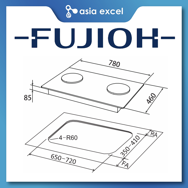 FUJIOH FH-GS7020 SVGL 2 BURNER DOUBLE INNER FLAME GLASS GAS HOB