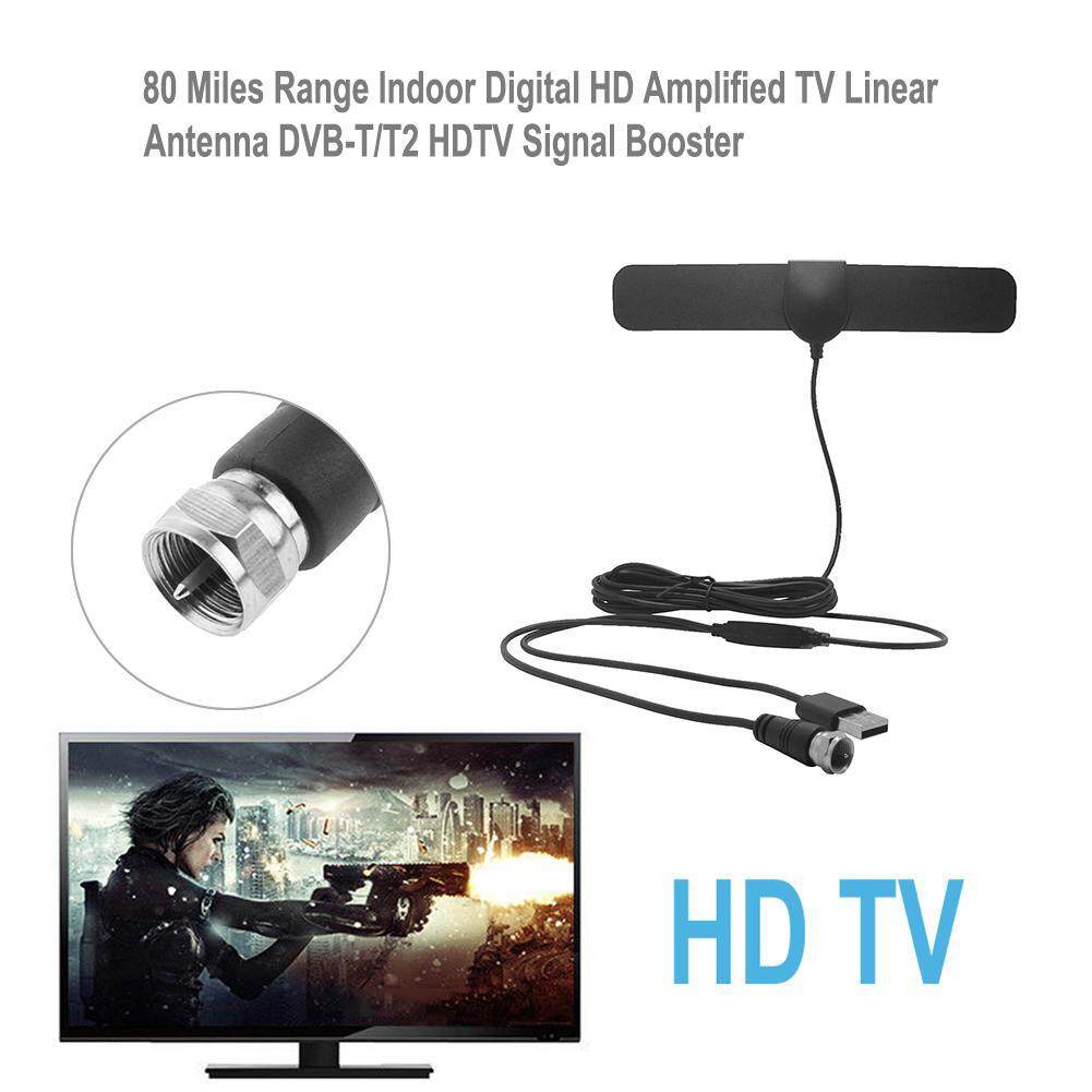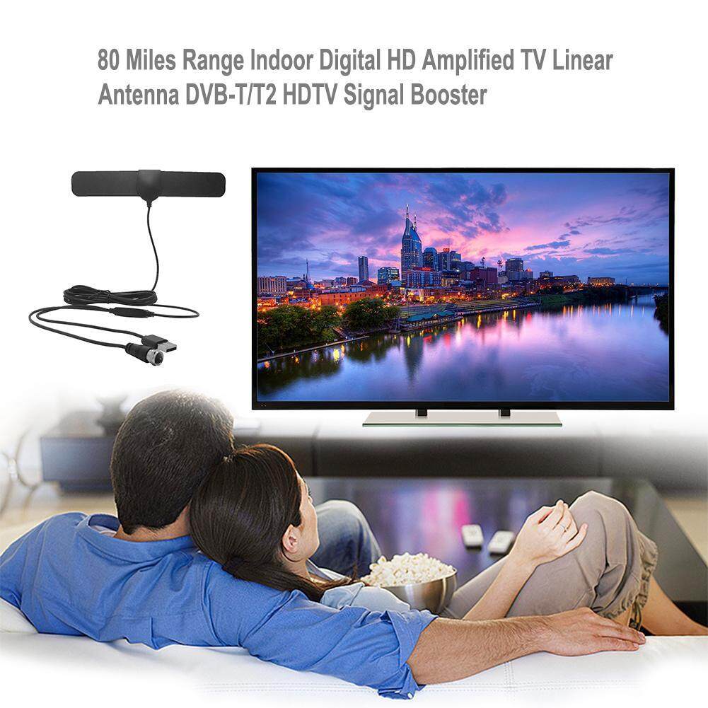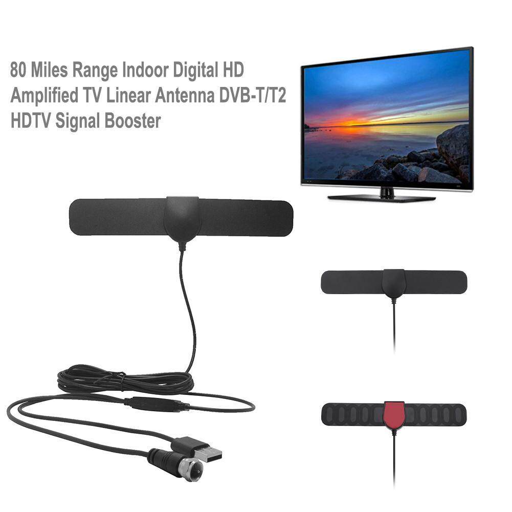 80 Miles Range Indoor Digital HD Amplified TV Linear Antenna DVB-T/T2 HDTV Signal Booster