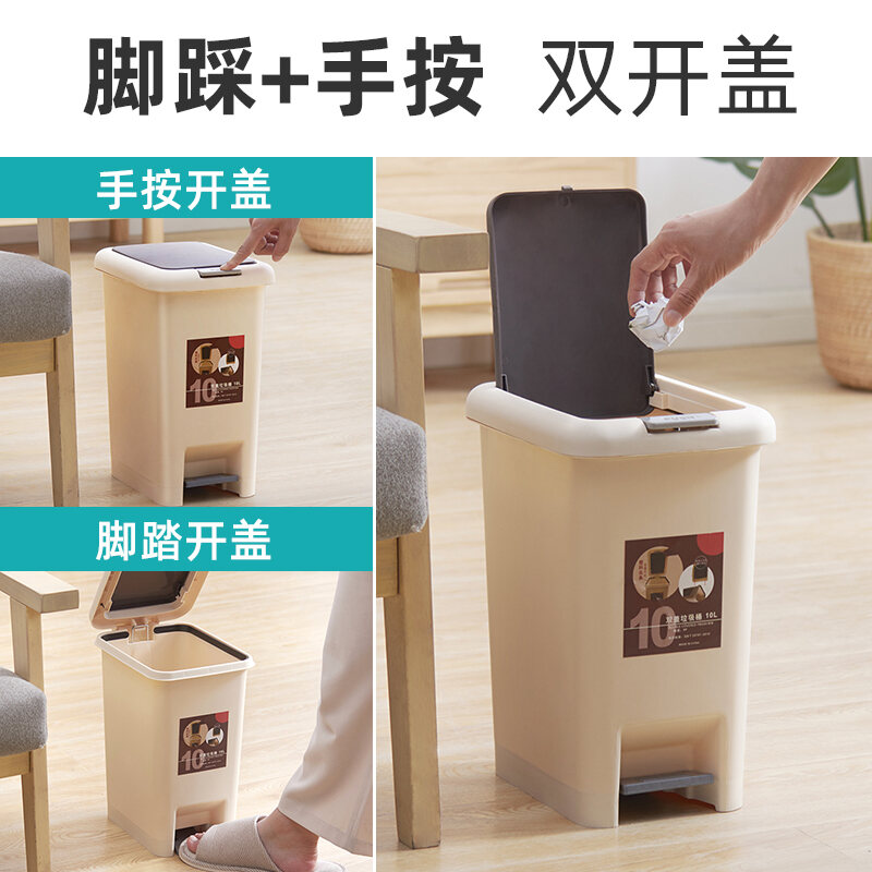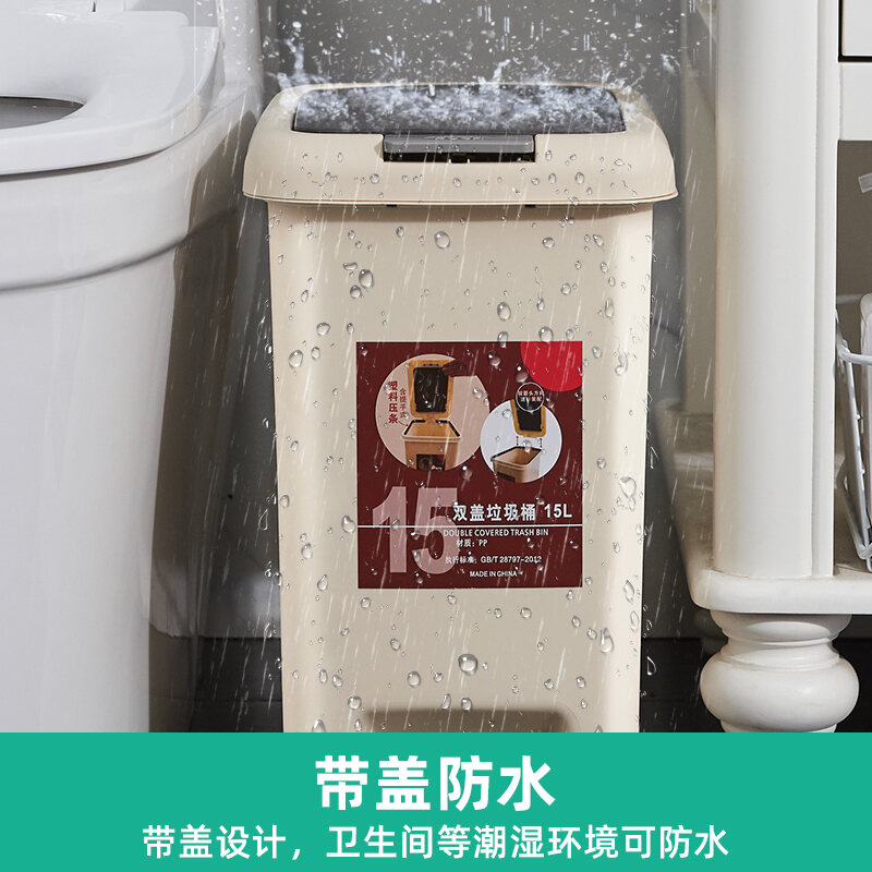 Household Trash Can with Lid, Covered Toilet, Living Room, Bedroom, Pedal-Type Small Paper Basket, Large Capacity