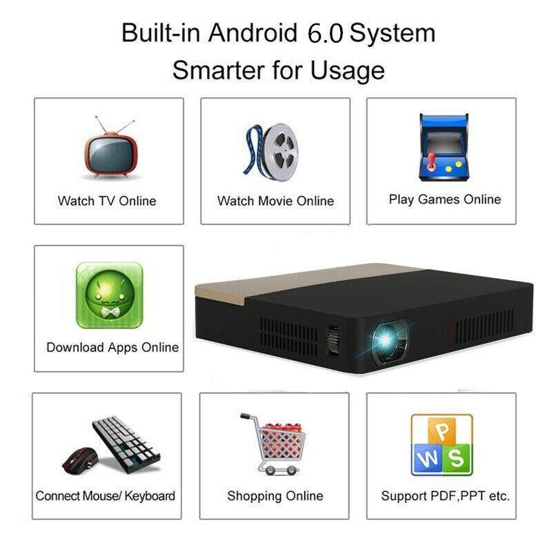 8500Lumens DLP Android HD 1080p Home Cinema 4K Real 3D Projector Can Zoom Auto Keystone Android Bluetooth 4.0 Wifi DVD HDMI USB SD