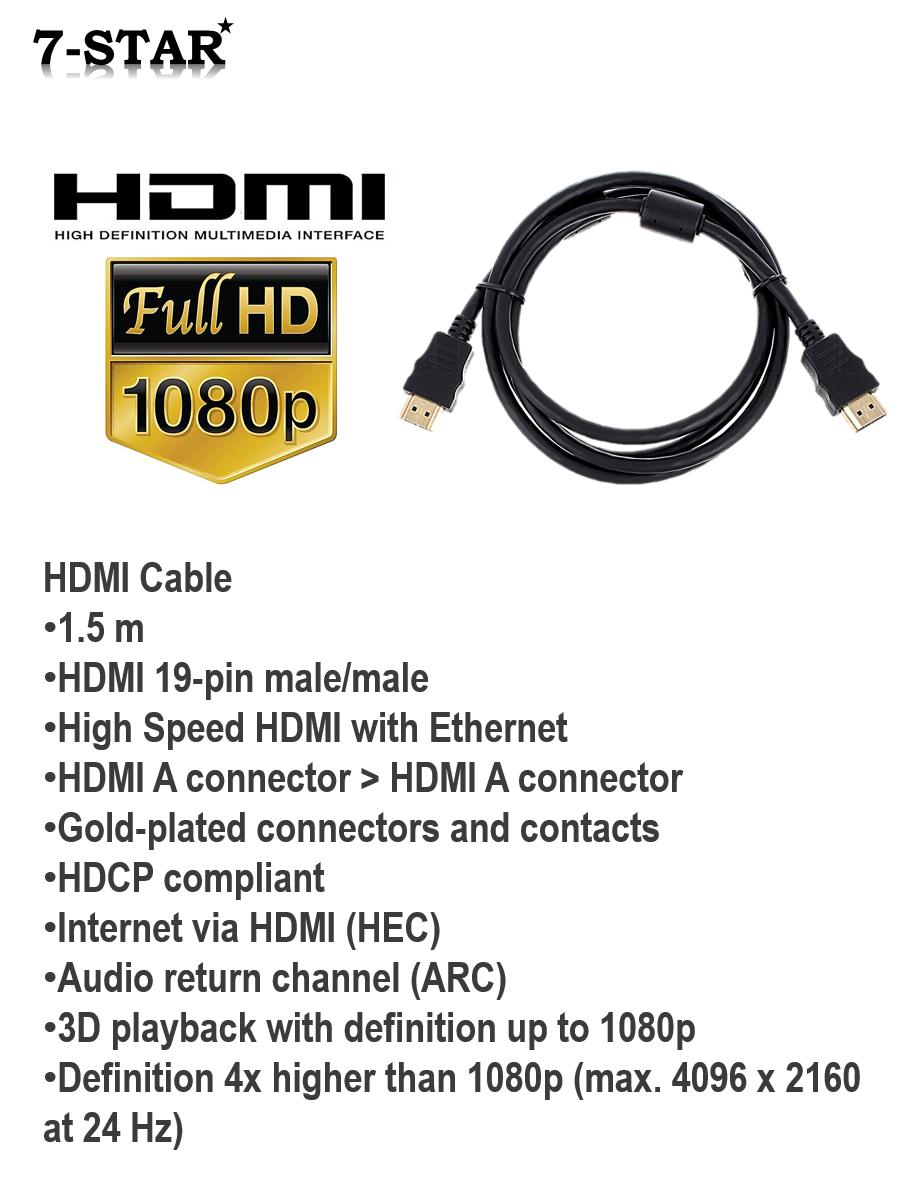 1.5M/1M HDMI Cable Male to Male HDMI Cable for 3D PS3, Xbox 360, Blue ray, HDTV, Plasma TV, LED and LCD, CCTV Camera & IP Camera System (Black)